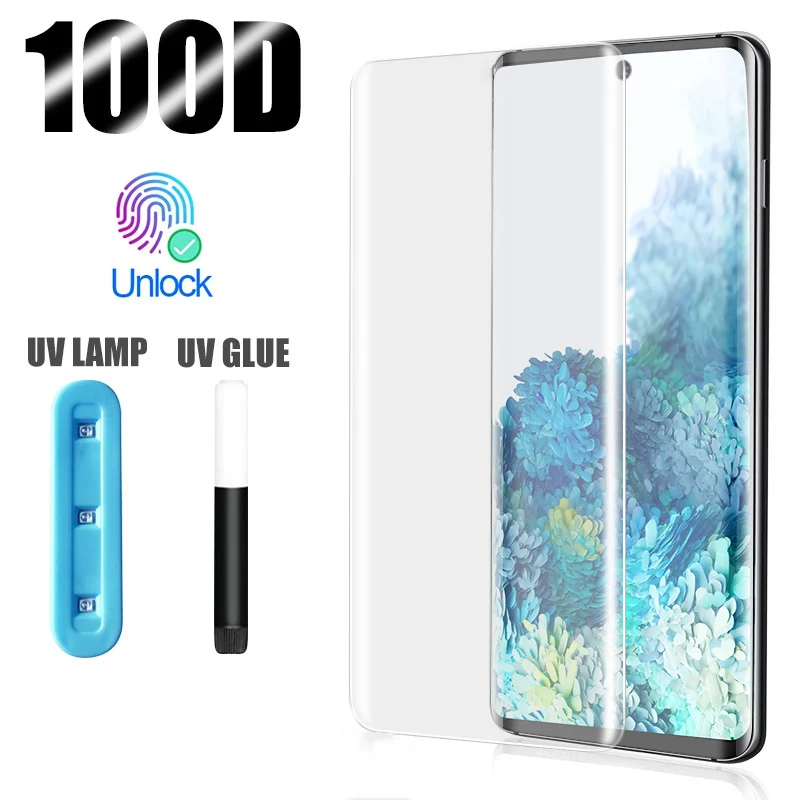 Comprar Protector de pantalla de vidrio templado UV para OnePlus 8 Pro, Protector de pantalla líquido con pegamento completo curvo para Oneplus 7 Pro 8
