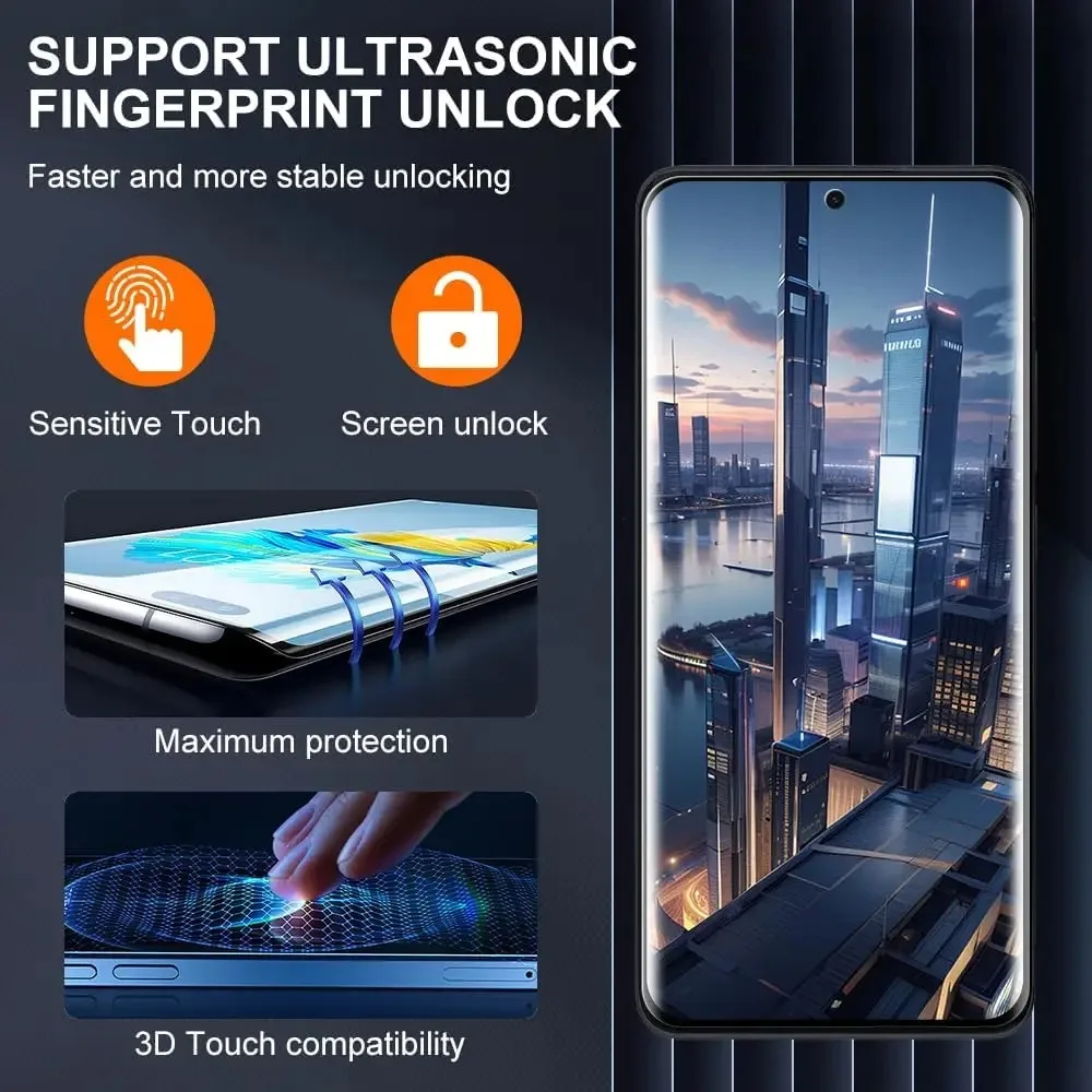se ajusta bien a la pantalla. Sobra un poco en los lados pero eso ayuda a que el case no le estorbe. La huella funciona bie y la instalación fue bastante fácil. Viene muy bien embalado, lo suficientemente protegido para que no le pase nada durante el envío.