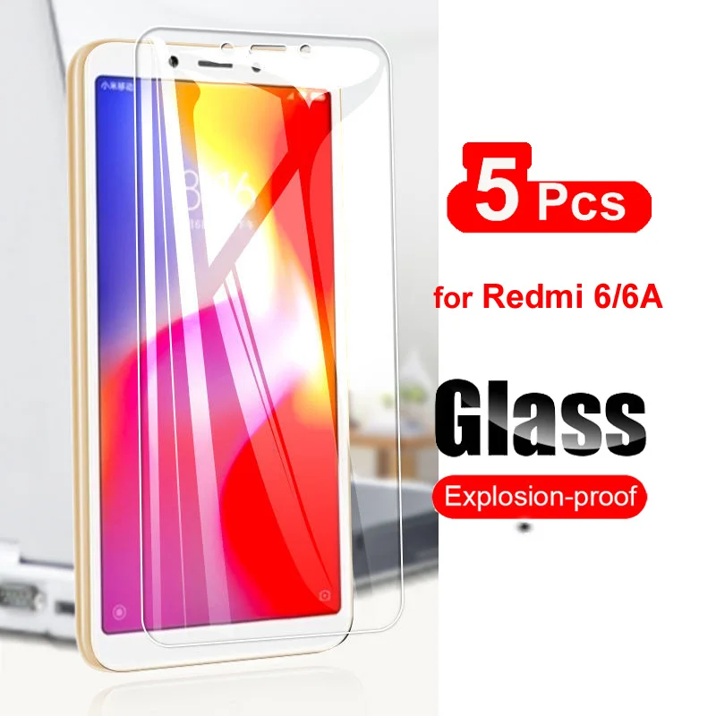 Comprar Protector de pantalla de vidrio templado para Xiaomi Redmi 6 6A, película protectora 9H para Xiaomi Redmi 6A 6 Pro, funda de vidrio amigable 9H, 5 uds.