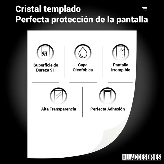 Las láminas son 100% transparentes. La capa externa del cristal es anti-arañazos y con propiedades anti-grasa (Las huellas dactilares se marcan menos).