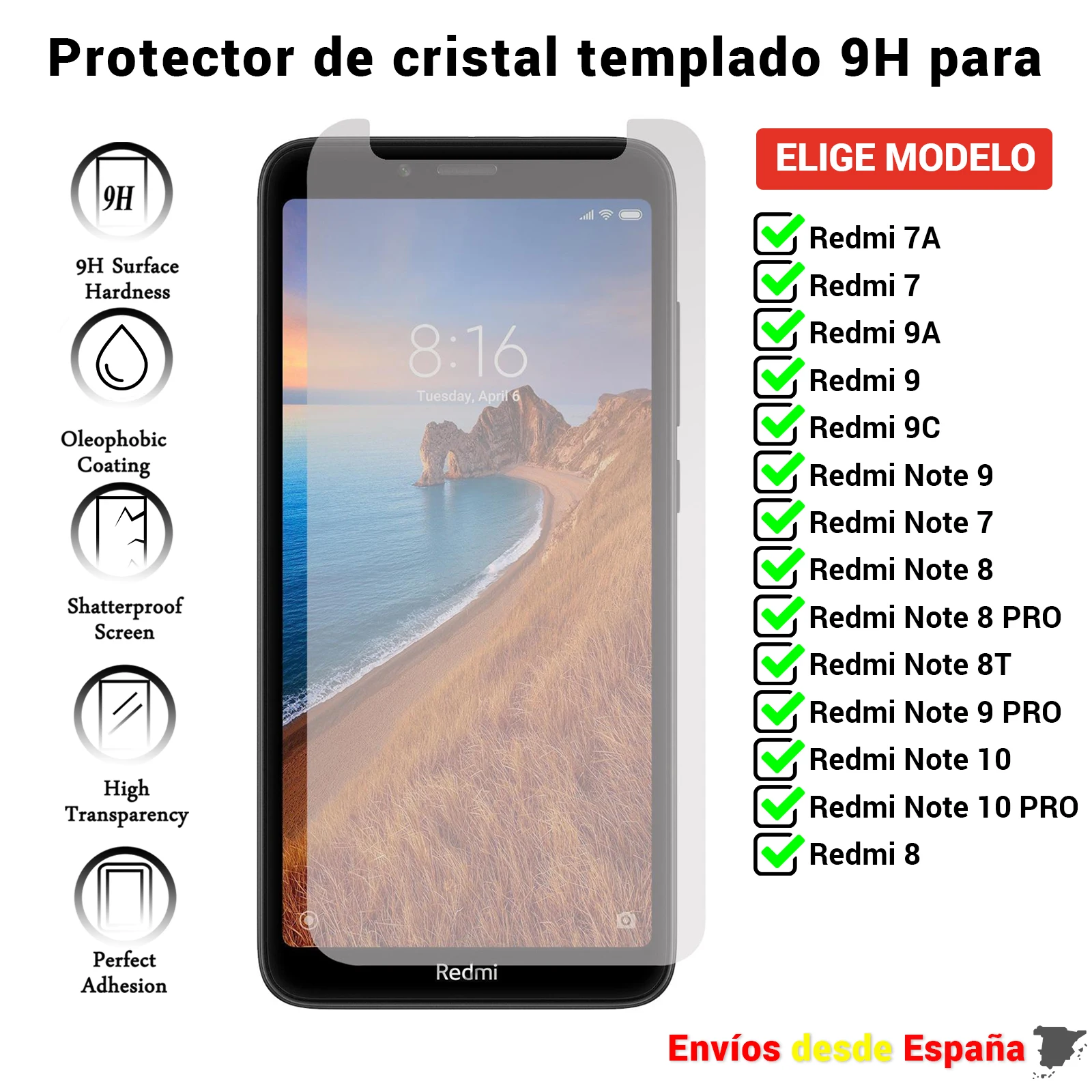 Comprar Protector de pantalla Para Xiaomi Redmi 7 7A 8 8T 9 9A 9C 9T Note PRO elige modelo. Cubierta de vidrio cristal templado