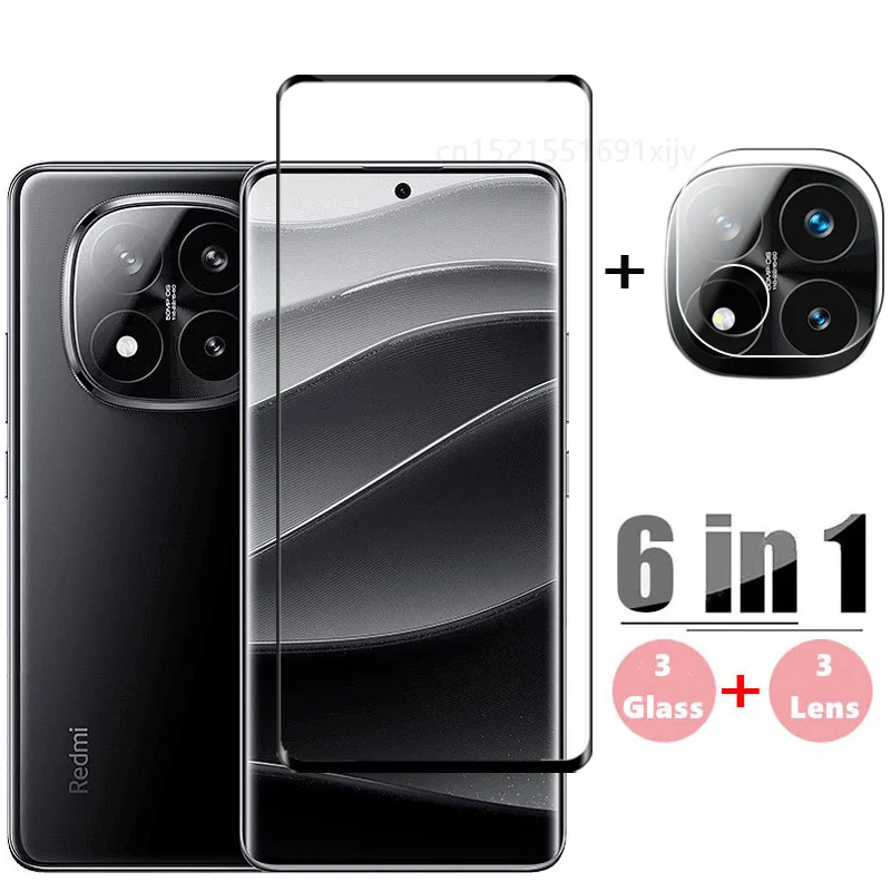 Comprar Protector de pantalla para Xiaomi Redmi Note 14 Pro Plus 5G, cristal templado 3D, película protectora para lente de teléfono, 6 en 1