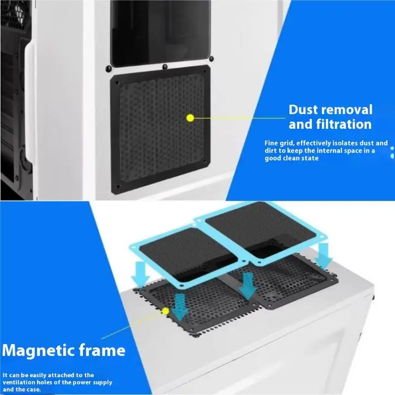 Filtro de polvo con marco magnético de 8-14cm, cubierta de malla a prueba de polvo, protector de red con orificio para PC, carcasa de computadora, ventilador de refrigeración, accesorios de fuente de alimentación
