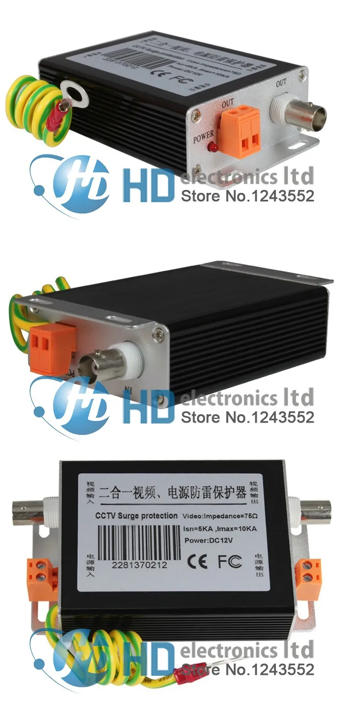 Comprar Protector de sobretensiones 2 en 1, dispositivo de protección de iluminación CCTV, alimentación y vídeo, corriente máxima de 10KA, 12V/24V/220V, 1 ud., Envío Gratis