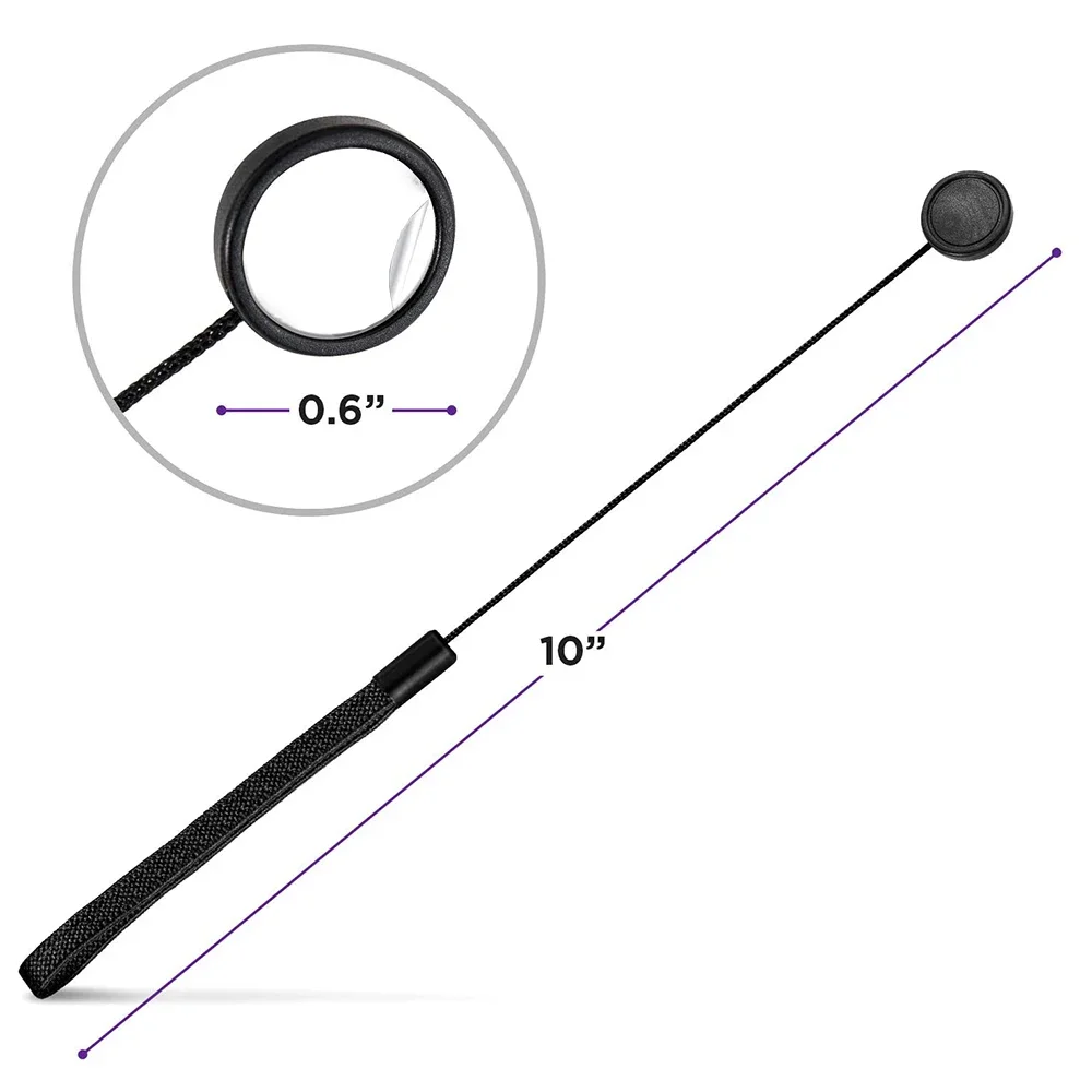 Correa de lente de cámara diseñada para prácticamente todas las tapas de lente, con o sin un agujero/bucle disponible. El pequeño botón se adhiere a la parte delantera de la tapa de la lente.