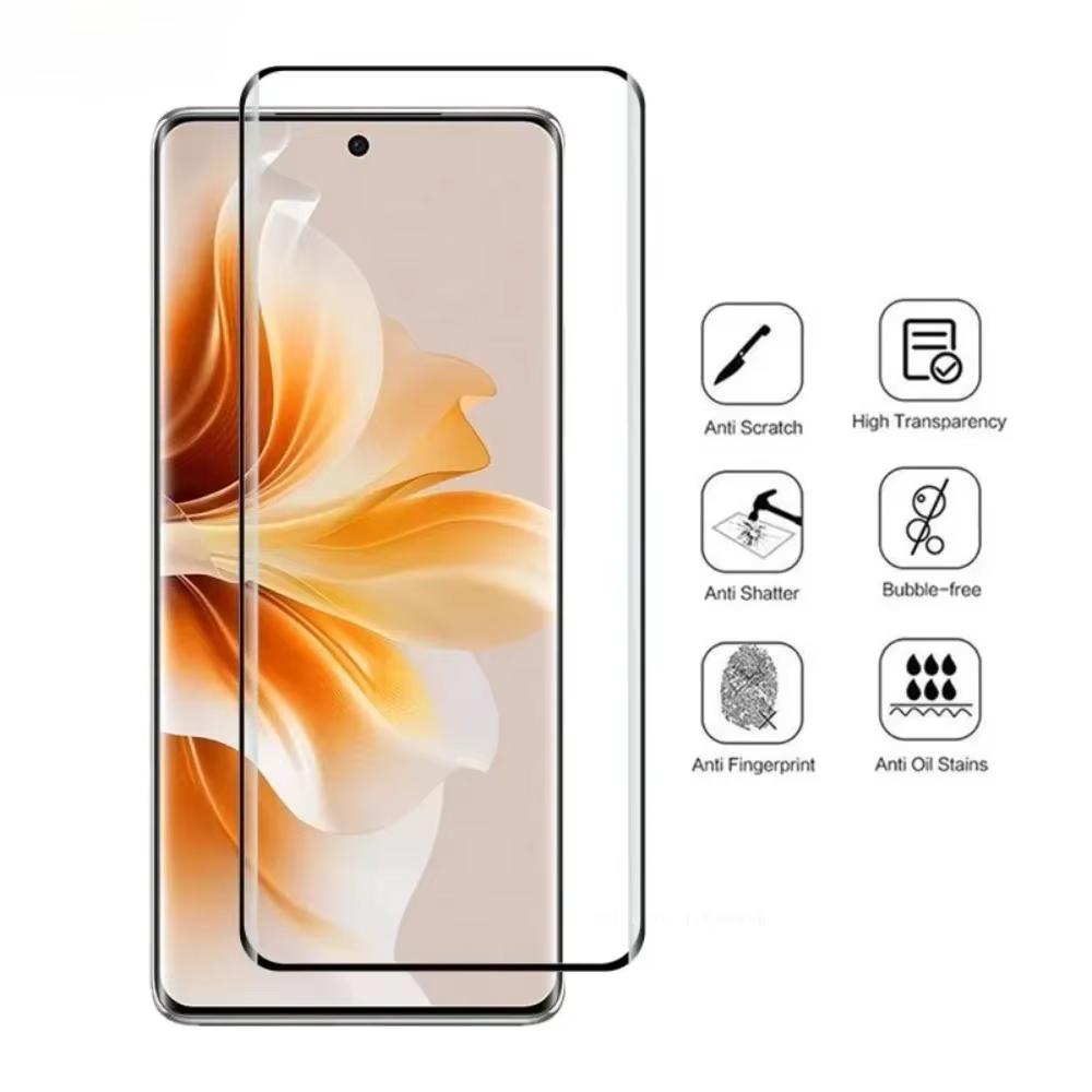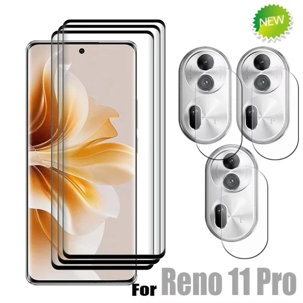 Comprar Protector templado curvo 9D para OPPO Reno 11 Pro, cristal de pantalla, película de lente de cámara de fibra suave y antiarañazos