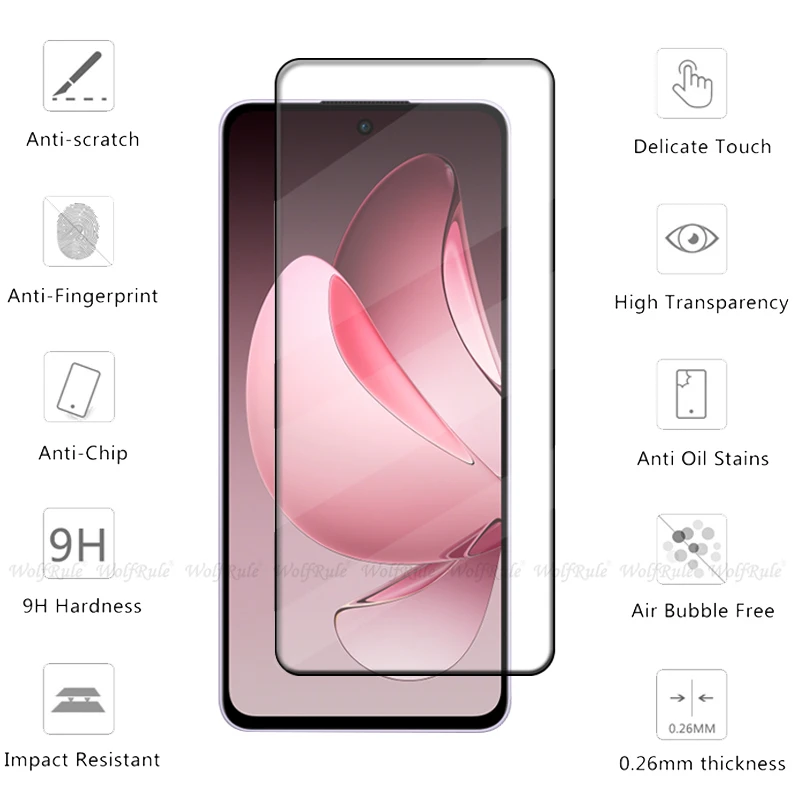 Comprar Protector de vidrio templado 6 en 1 para Reno 13F, cubierta de pegamento completo 9H HD para Protector de pantalla, lente de cristal OPPO Reno 13F