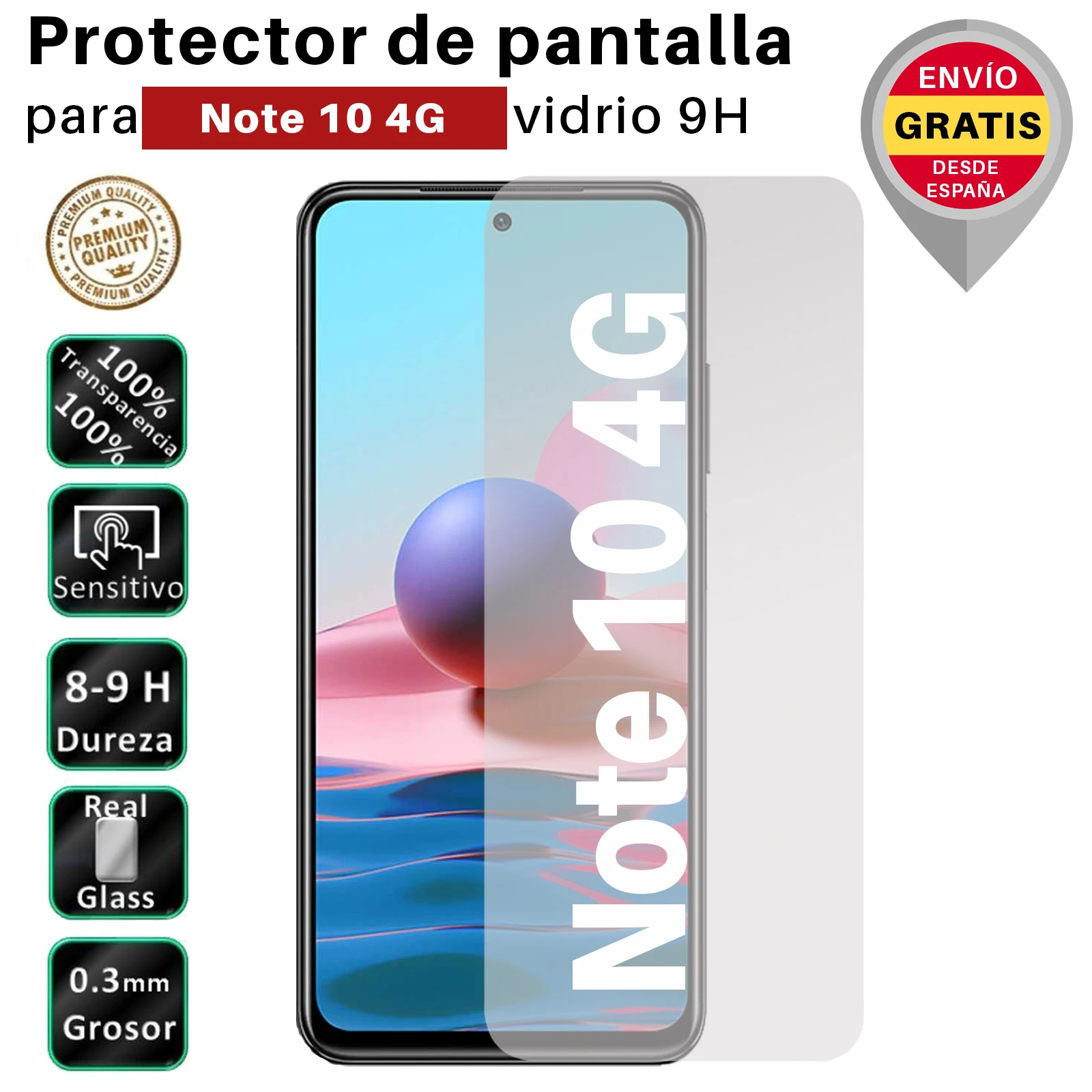 Comprar Protector para Xiaomi Redmi Note 10 4G Cristal Templado de pantalla para movil. Vidrio 9H - Movilrey