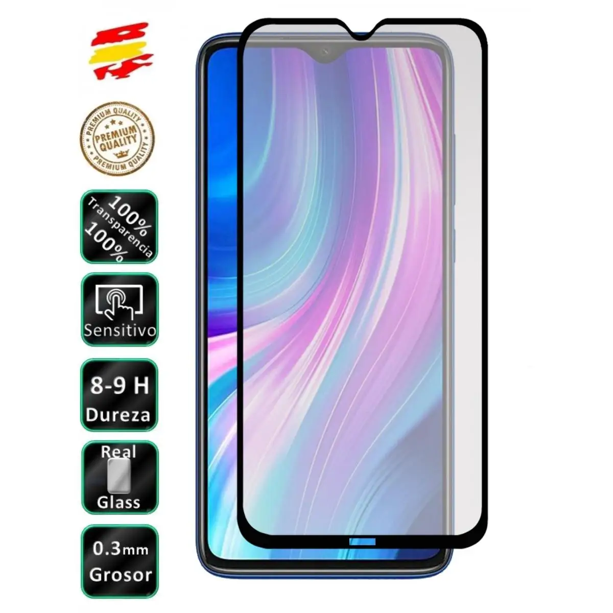 Comprar Protector para Xiaomi Redmi Note 8 Pro NEGRO Cristal Templado Curvo 3D Completo de pantalla para movil. Vidrio 9H - Movilrey