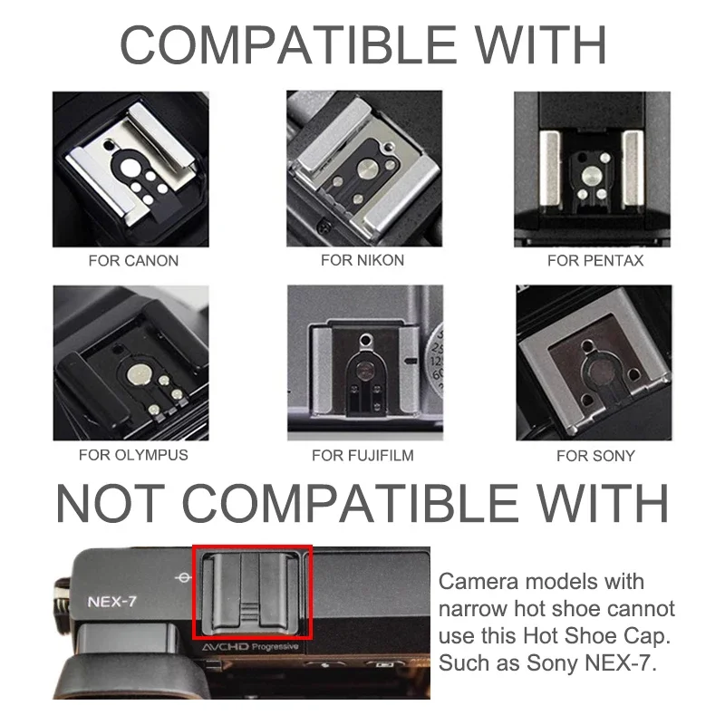 Los modelos de cámara con zapata estrecha no pueden usar esta tapa de zapata caliente; como Sony.