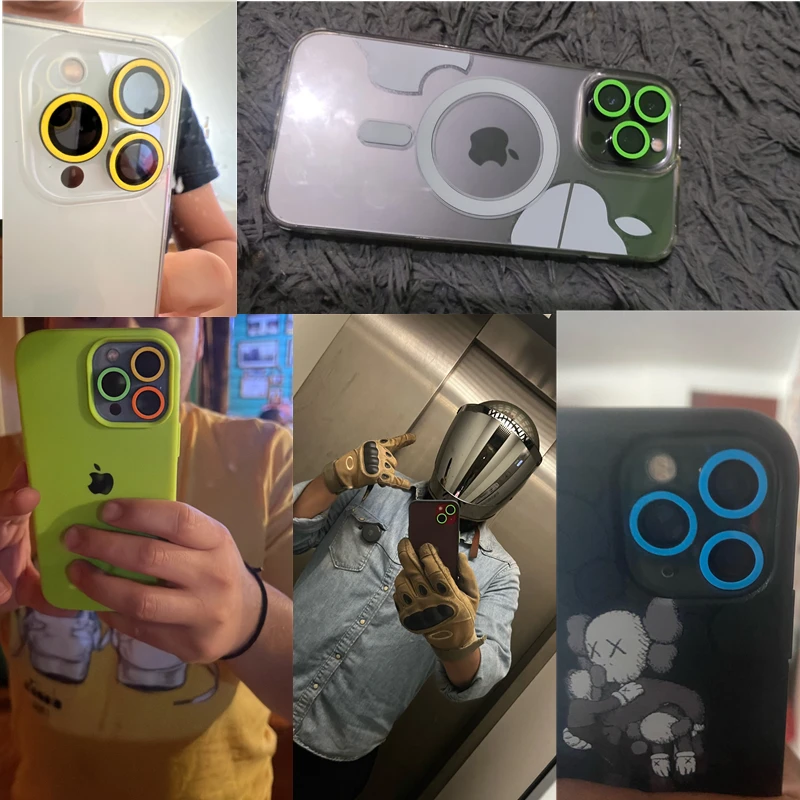 Comprar Protectores de lente de cámara para iPhone 11ProMax 13Min 13Pro, anillo de cristal luminoso para cámara, película protectora para iPhone 11 13 12 14 Pro Max