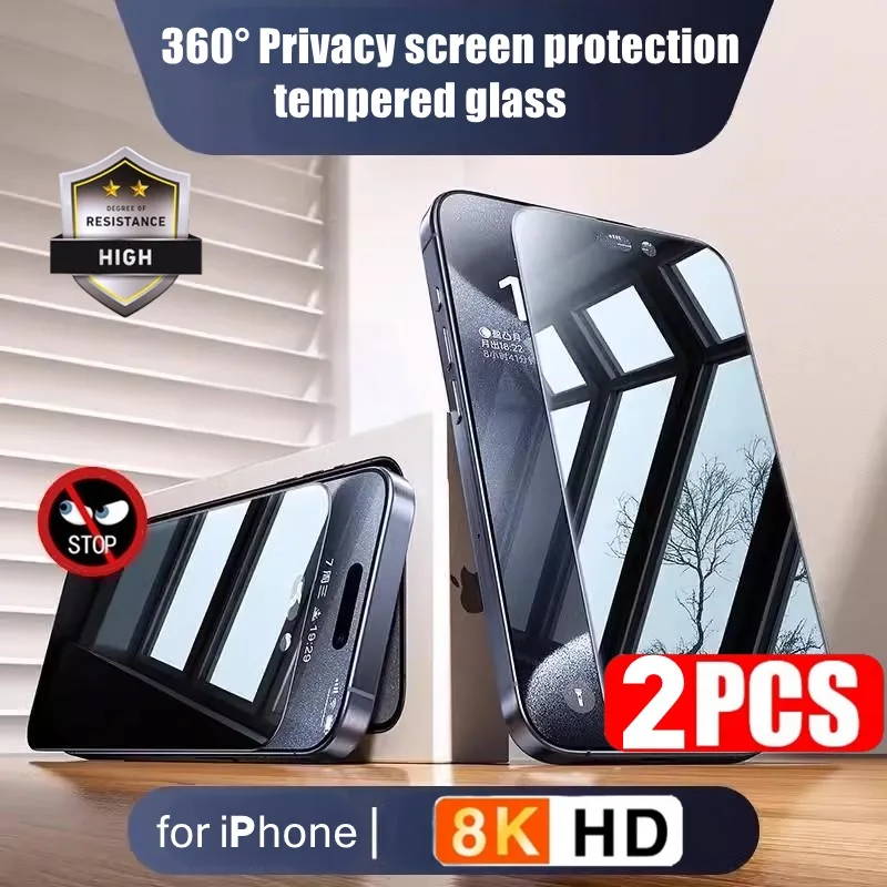 Protectores de pantalla antiespía para iPhone, vidrio templado de privacidad de 360 ° para iPhone 15, 14, 13, 12, 11 PRO MAX PLUS, X, XR, XS Max, 2 uds.