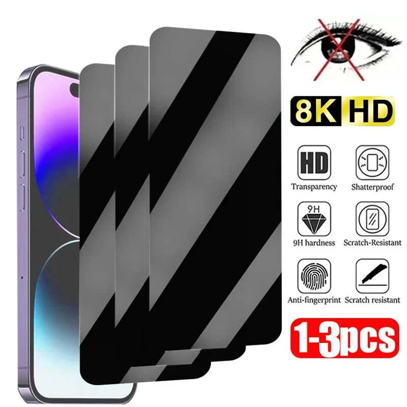 Protectores de pantalla antiespía para iPhone, vidrio templado de privacidad para iPhone 15, 14, 13, 12, 11 Pro Max Plus, X, XR, XS Max, SE, 1-3 piezas