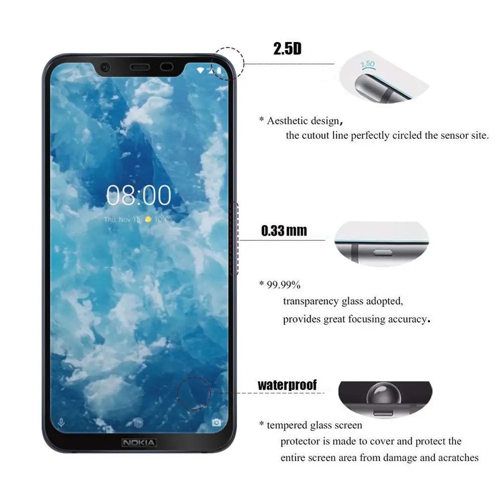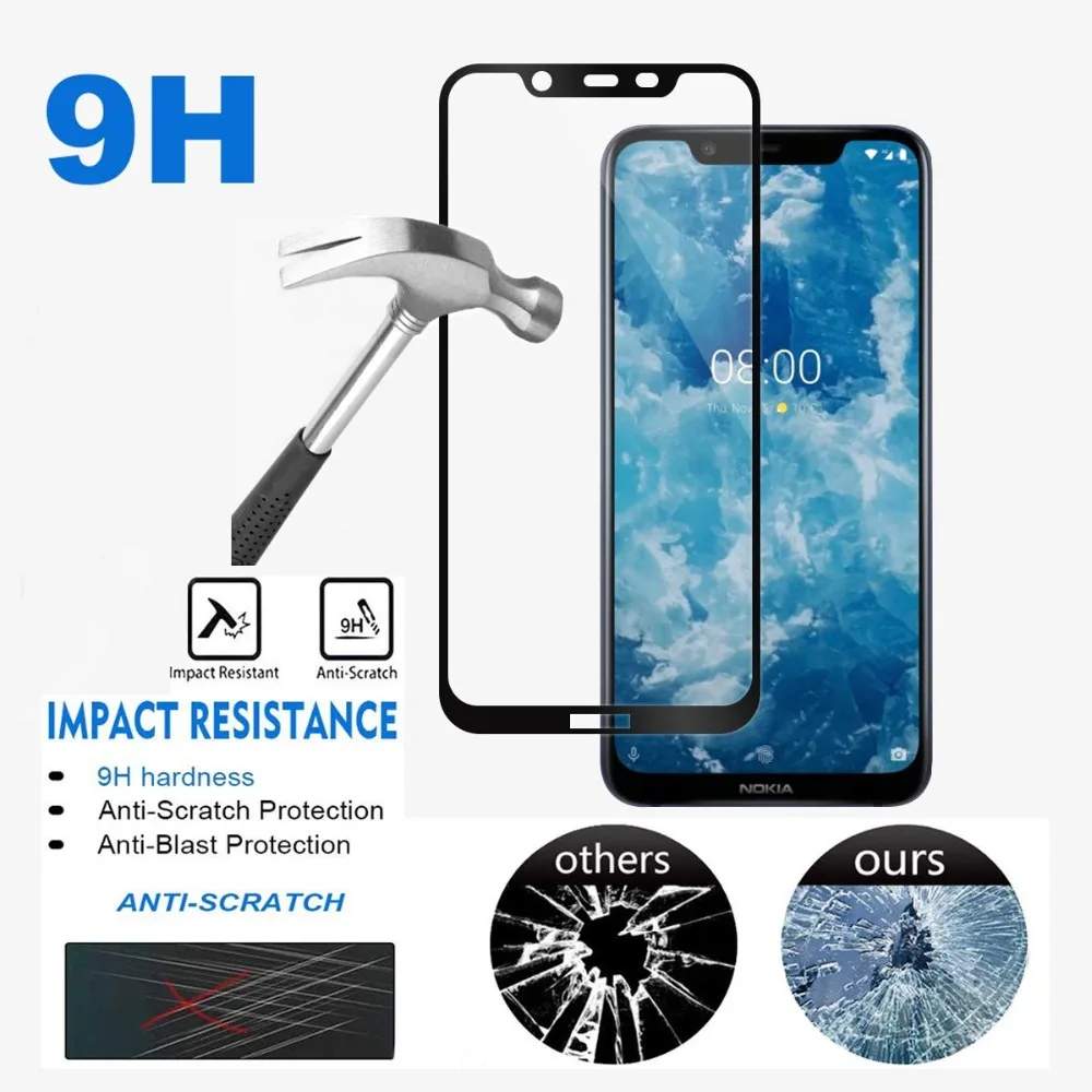 Comprar Protectores de pantalla de cubierta completa para Nokia 2,1, 3,1, 5,1, 6,1, 7,1, vidrio templado para Nokia 7 plus, X5, X6, película protectora 2, 3, 5, 6, 7