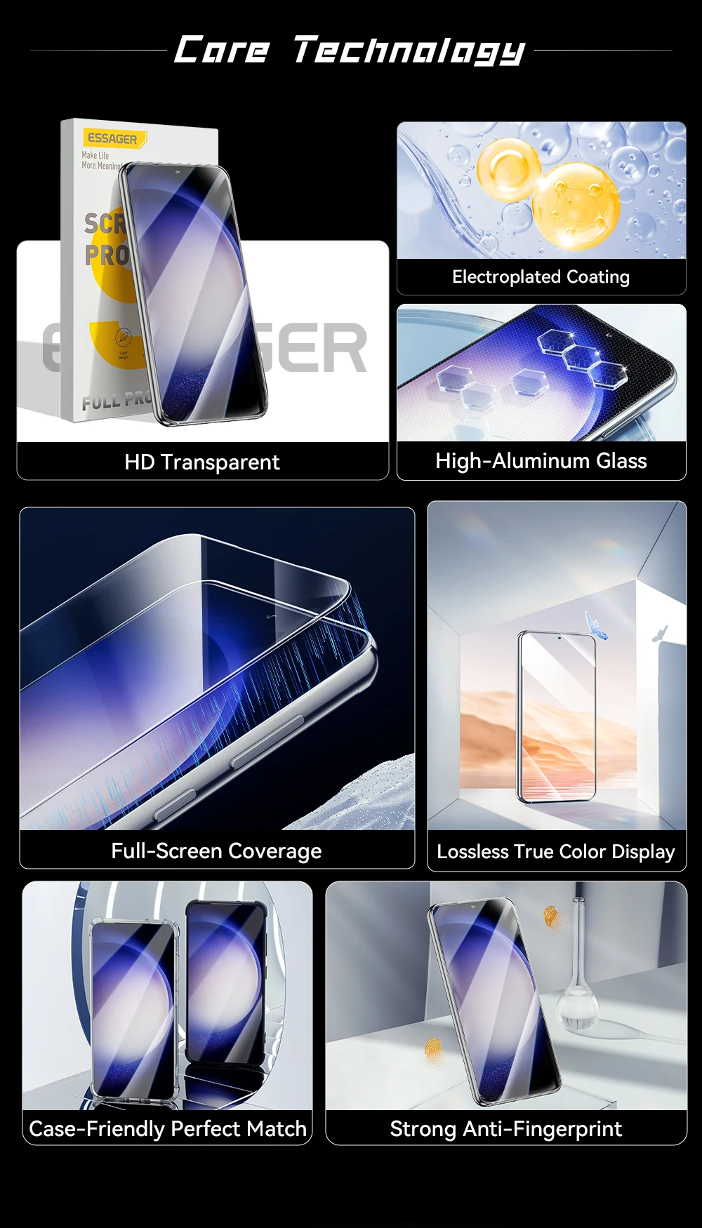 Comprar Protectores de pantalla Essager para Samsung S10 S21 S23 NOTA 9 protectores de pantalla cubierta de seguridad de vidrio templado accesorios de película para teléfonos