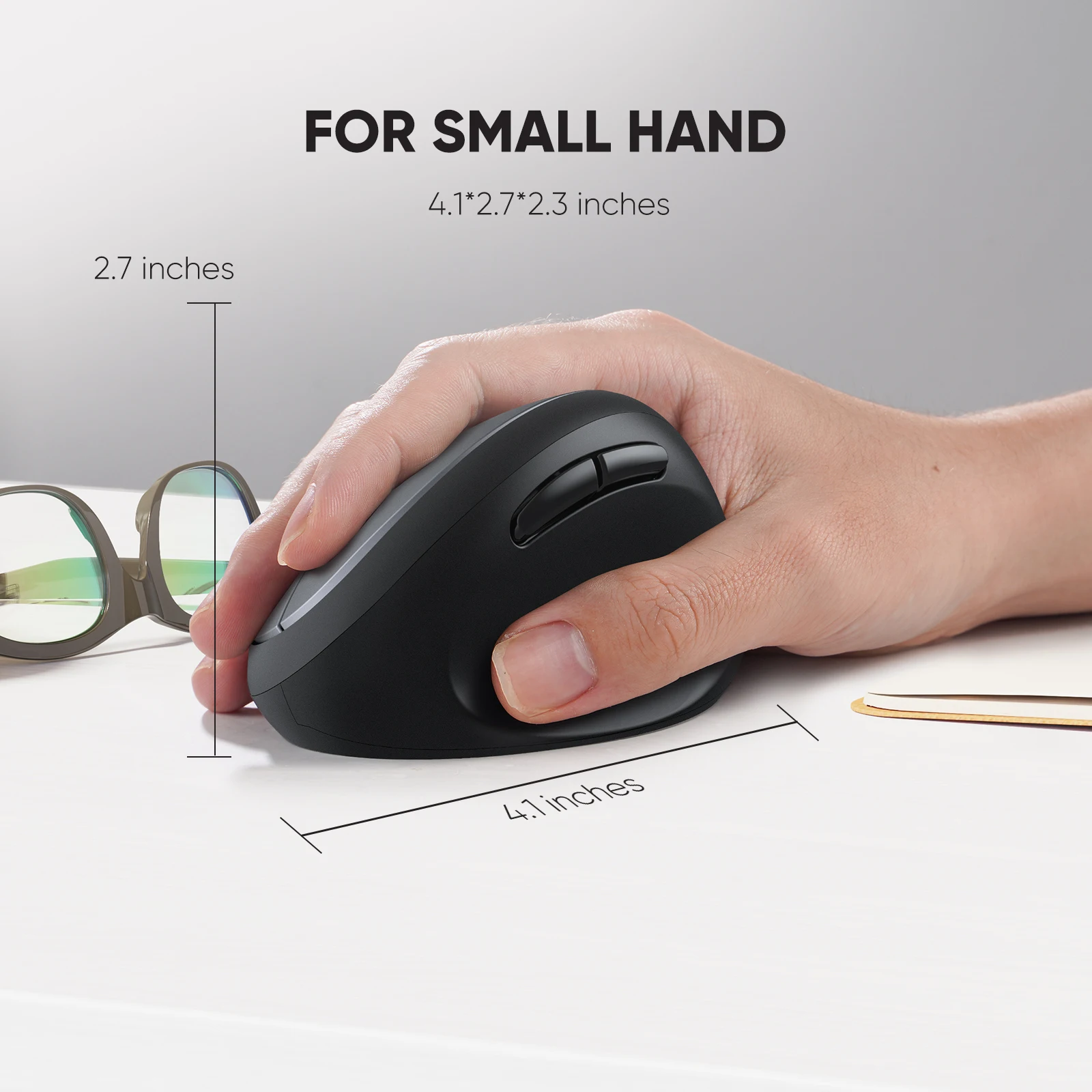Dimension: 4.1*2.7*2.3 inches. Fits small hands well. Please confirm the size before buying it.