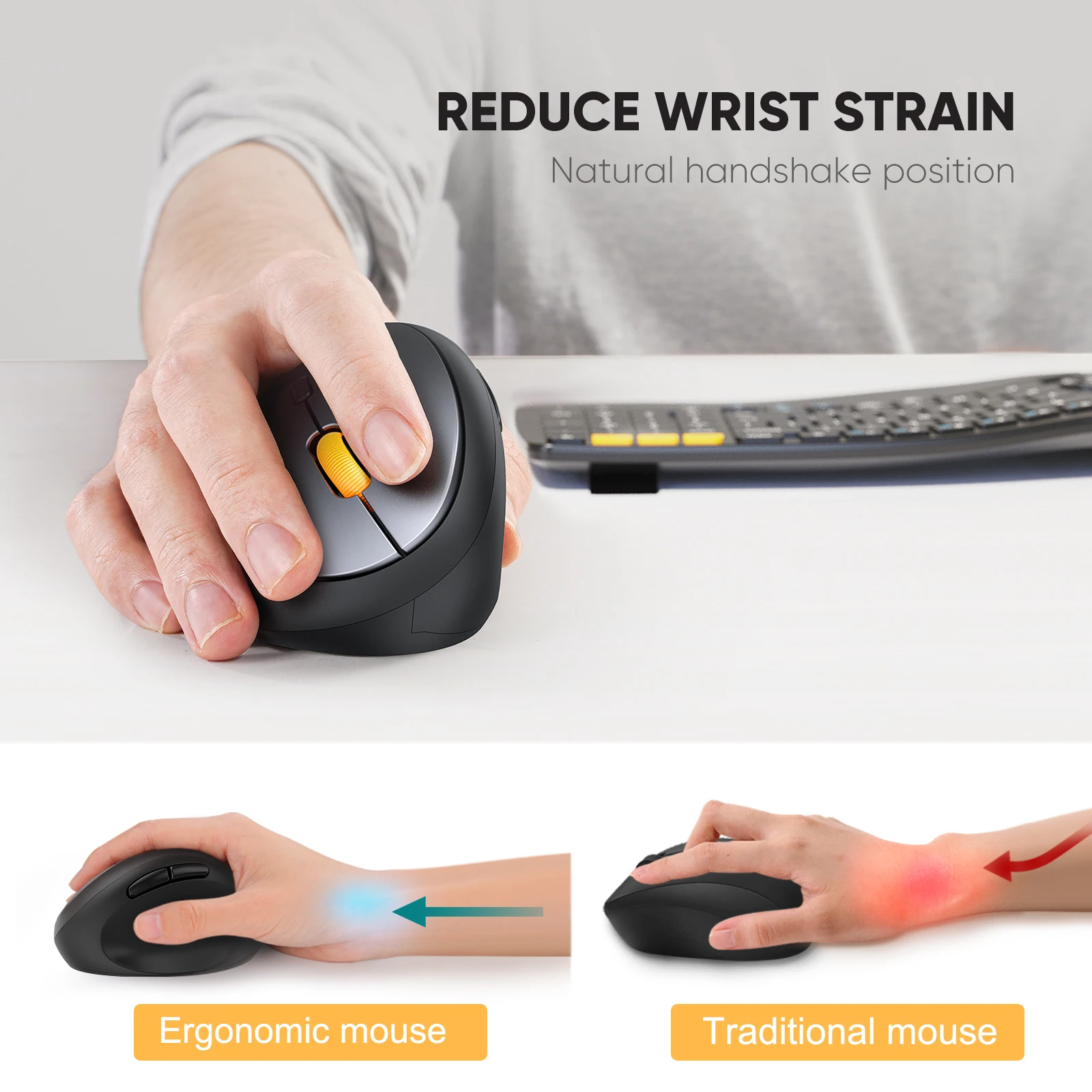 ¡Di adiós al dolor de muñeca! Un ratón engonómico científico: fomenta un cómodo apretón de manos natural que cuida mejor tu muñeca y palma.