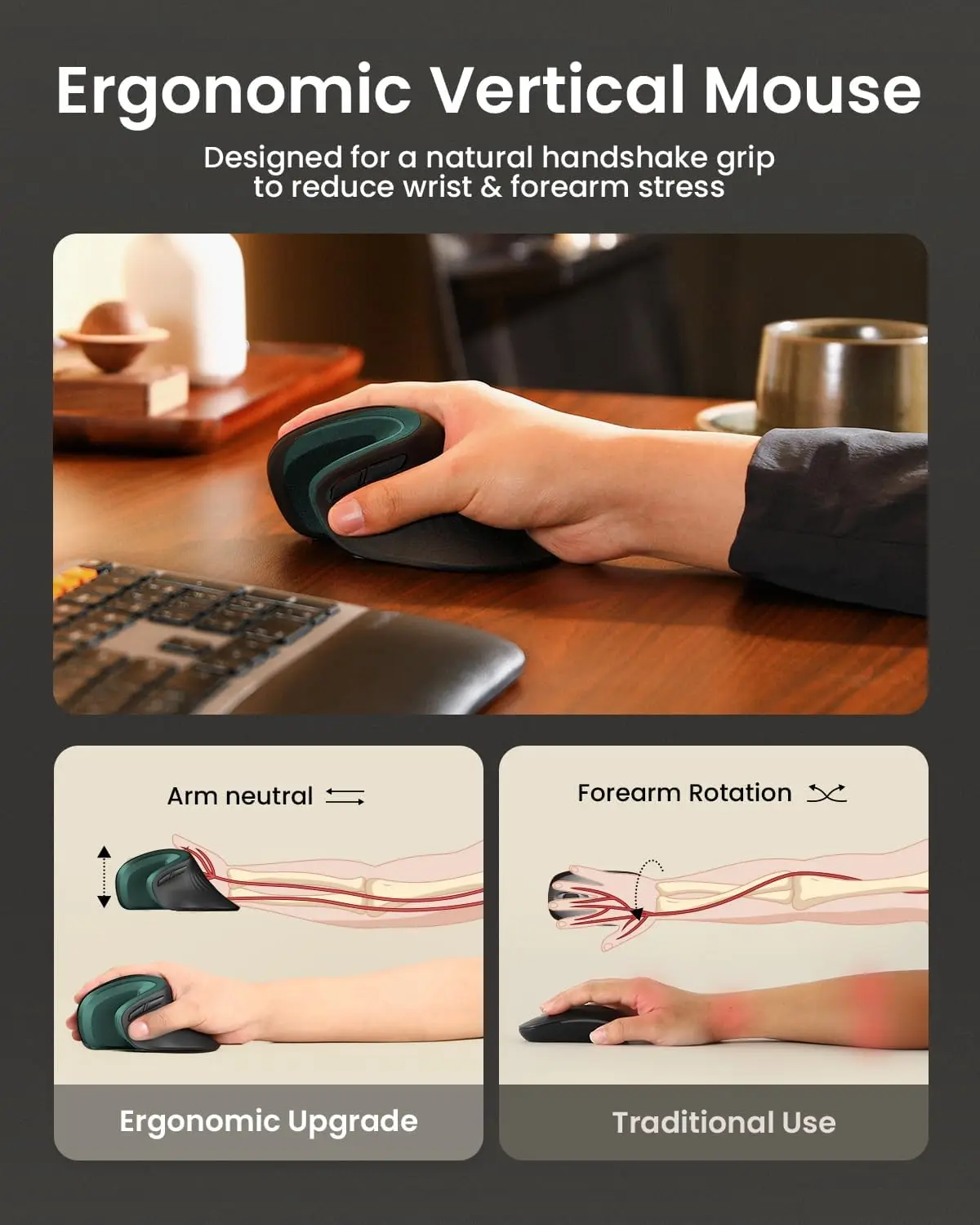 Ratón vertical ergonómico con diseño ergonómico científico