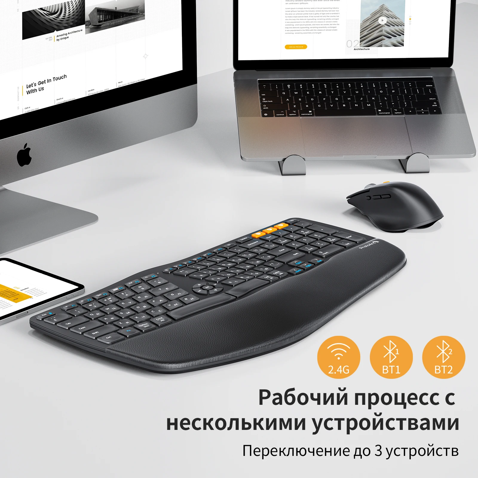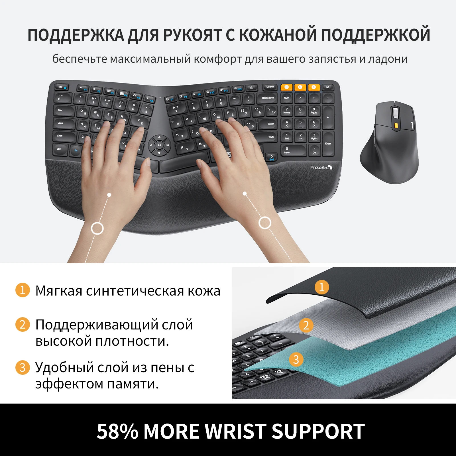 Comprar ProtoArc-teclado y ratón inalámbricos ergonómicos divididos, Combo de teclado ruso Bluetooth para Windows, Mac y Android