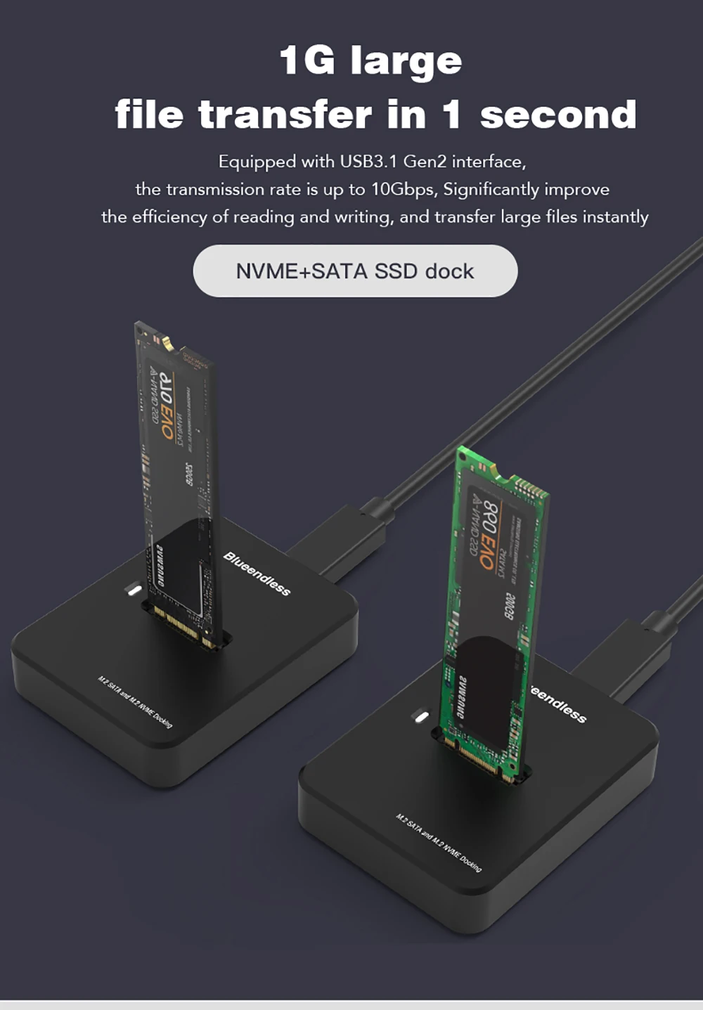 Comprar Protocolo Dual M.2 NVME SATA SSD estación de acoplamiento Base carcasa de disco duro SSD externo 10G lectura en línea velocidad de escritura SSD caso