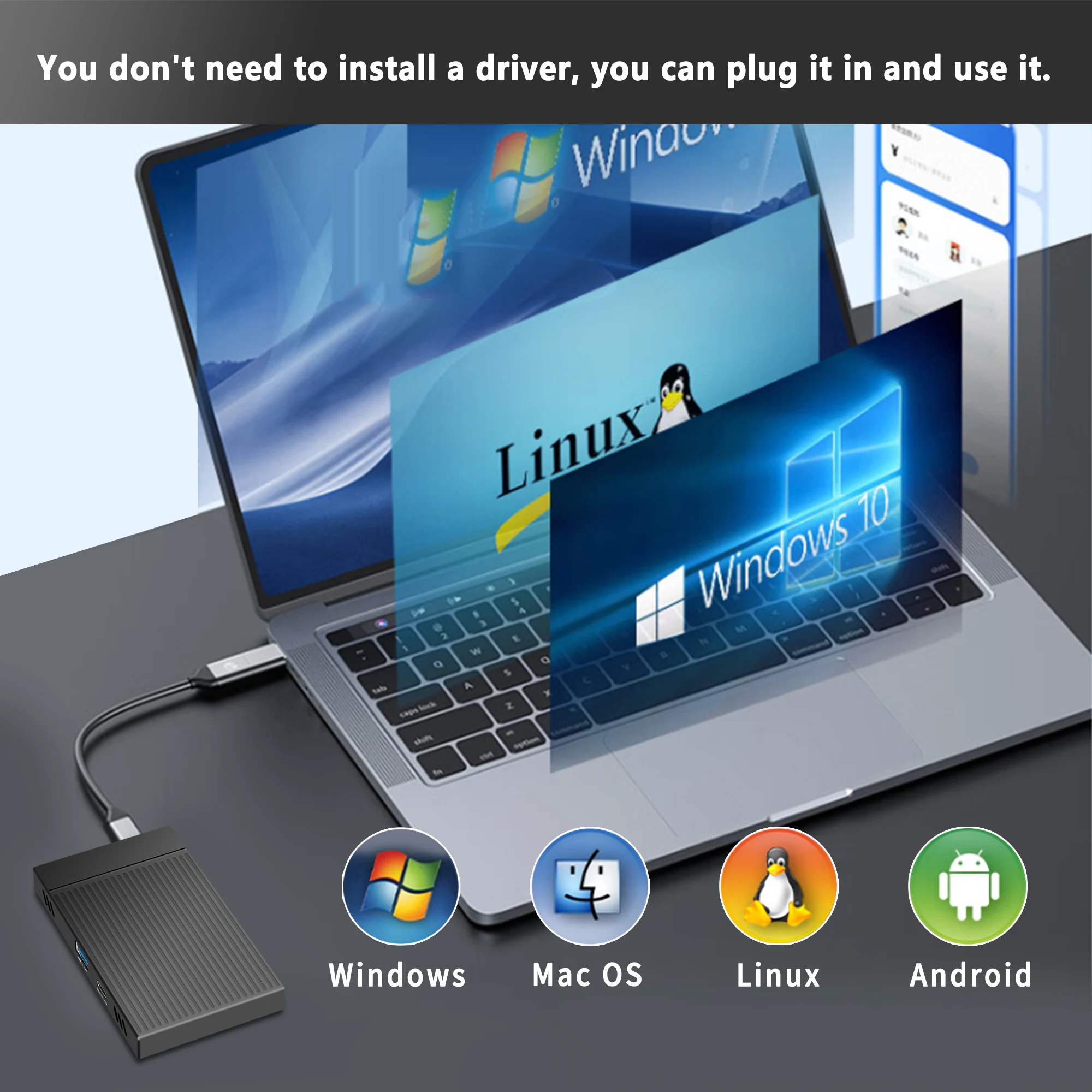 3.La especificación USB+tipo C de la interfaz HUB es gen2 10Gpcs, que se puede conectar a discos duros externos u otros dispositivos