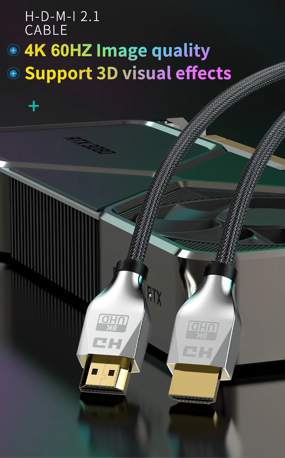 Cable HDMI 8K-El puerto de interfaz multimedia HD 2,1 extiende el ancho de banda a 48 Gbps. Conecta televisores 8K/HD a reproductores de Blu-Ray/DVD, Xbox, Play Station, PC y otros dispositivos HDMI