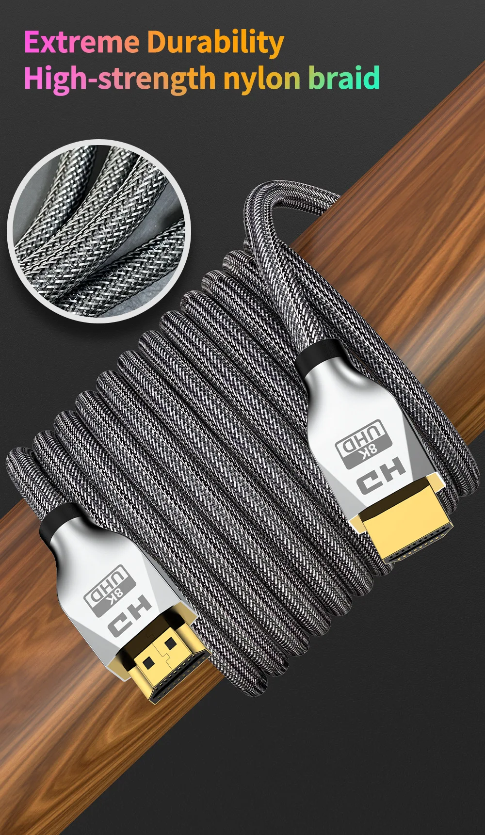 Cable HDMI 8K-El puerto de interfaz multimedia HD 2,1 extiende el ancho de banda a 48 Gbps. Conecta televisores 8K/HD a reproductores de Blu-Ray/DVD, Xbox, Play Station, PC y otros dispositivos HDMI
