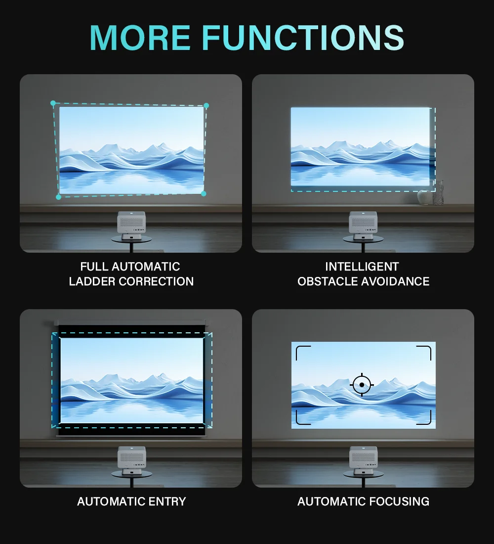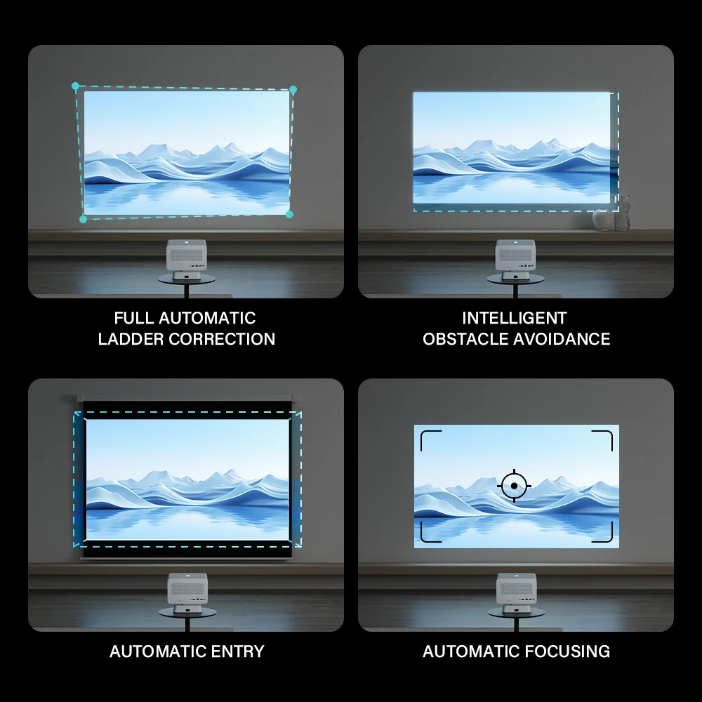 A medida que ajusta el ángulo del proyector, la corrección automática responde sincrónicamente para mantener la imagen proyectada clara y correcta.