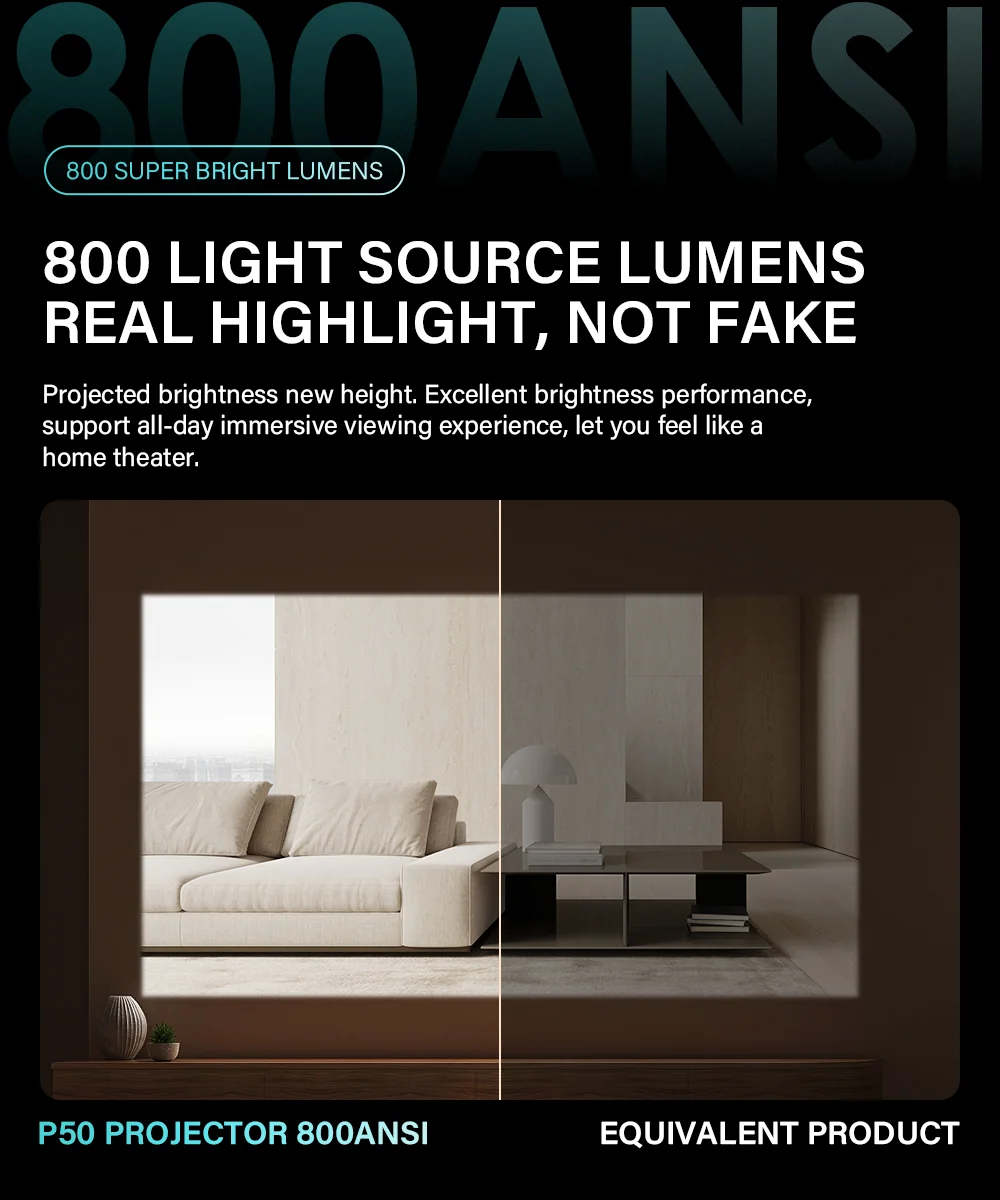 Brillo proyectado nueva altura.Excelente rendimiento de brillo, admite una experiencia de visualización inmersiva durante todo el día y le permite sentirse como un cine en casa.