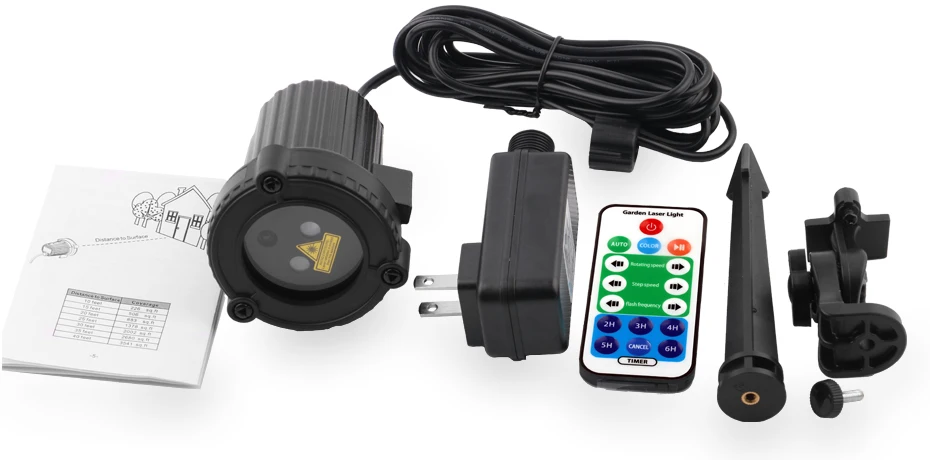 IP65 impermeable láser proyector con 9.8ft (3M) Cable adaptador de alimentación X 1X1 tornillo paquete X 1 Stand× 1 control remoto RF X 1 (batería no incluida CR2025 3V) Manual de usuario (inglés) X1.