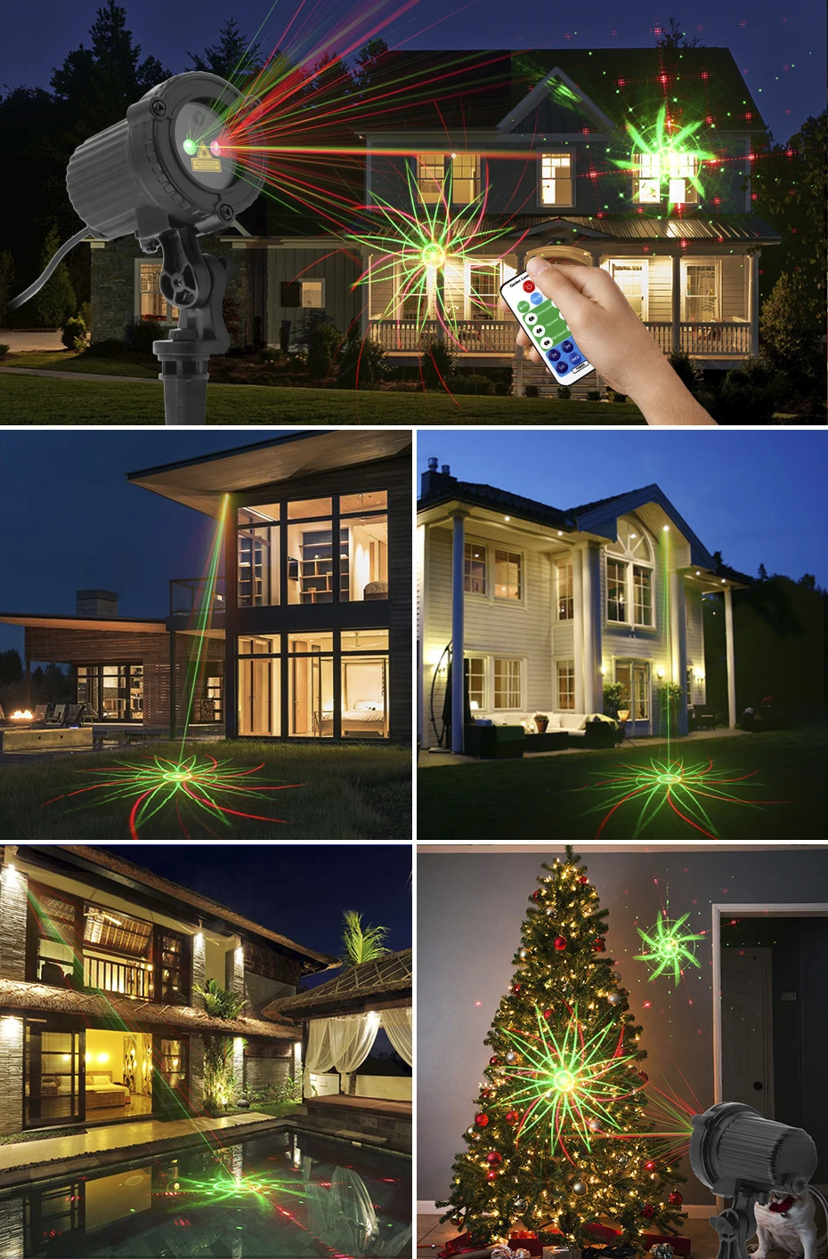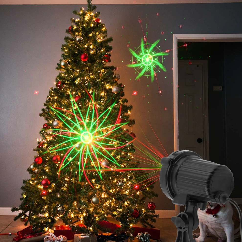 Comprar Proyector láser ALIEN para exteriores, luces de Navidad impermeables con control remoto rojo-verde, 8 patrones, para decoración de jardín, casa, árbol
