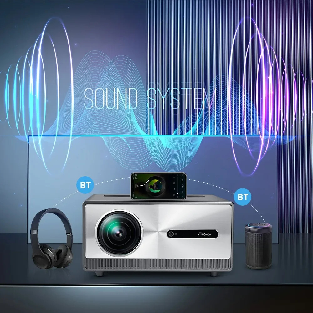 Nuestro proyector tiene potentes parlantes incorporados y el último chip WiFi6 restauró cada efecto de sonido detallado y una excelente experiencia de sentido auditivo. Una pantalla más grande y efectos de sonido premium amplían tu felicidad como experiencia de cine en casa. ¡Simplemente disfrútalo!