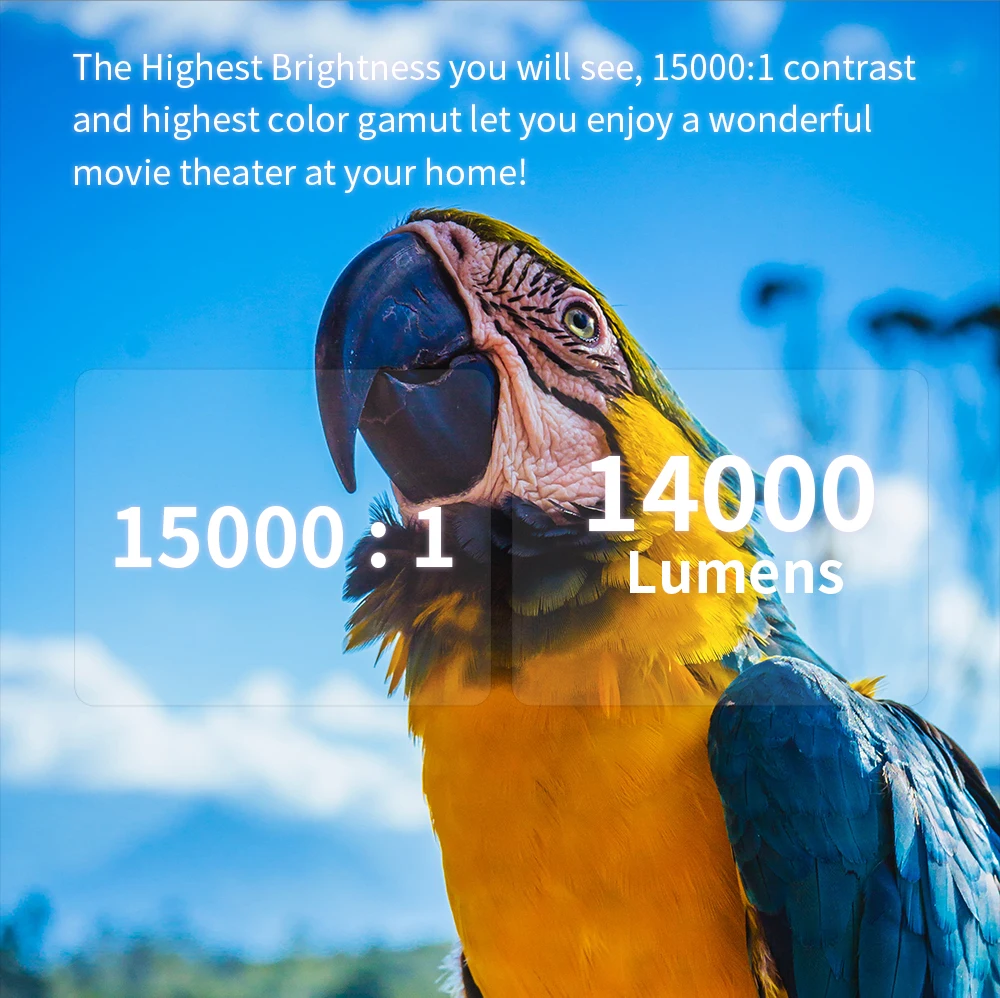 Full HD 1080P Projector upgraded technology with super bright LED and LCD display, 14000 Lumens Brightness ,15000:1 high contrast ensure wider color gamut and clearest images for indoor and outdoor movie watching.