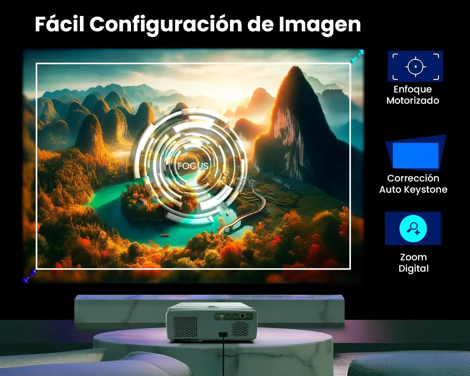 Enfoque motorizado , Autofocus, Keystone 4 puntos: Gracias a su avanzado panel LCD, el flujo de brillo está optimizado, proporcionando imágenes nítidas y vibrantes para disfrutar de tus películas, series y juegos favoritos.
