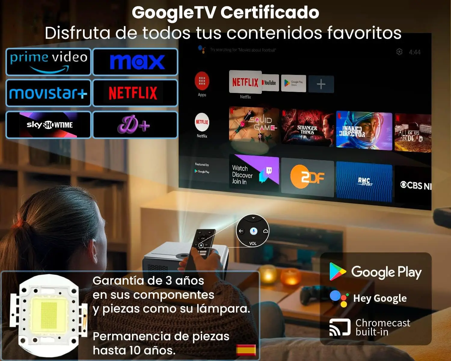 Comprar Proyector UNICVIEW FHD 2200, Google TV Certificado para Net-Flix, PrimeVideo, You-Tube, MAX, D+, Enfoque motorizado, 30.000 lúmenes, Fullhd Nativo, El más Luminoso en tecnología LCD, Optimizado para Gaming