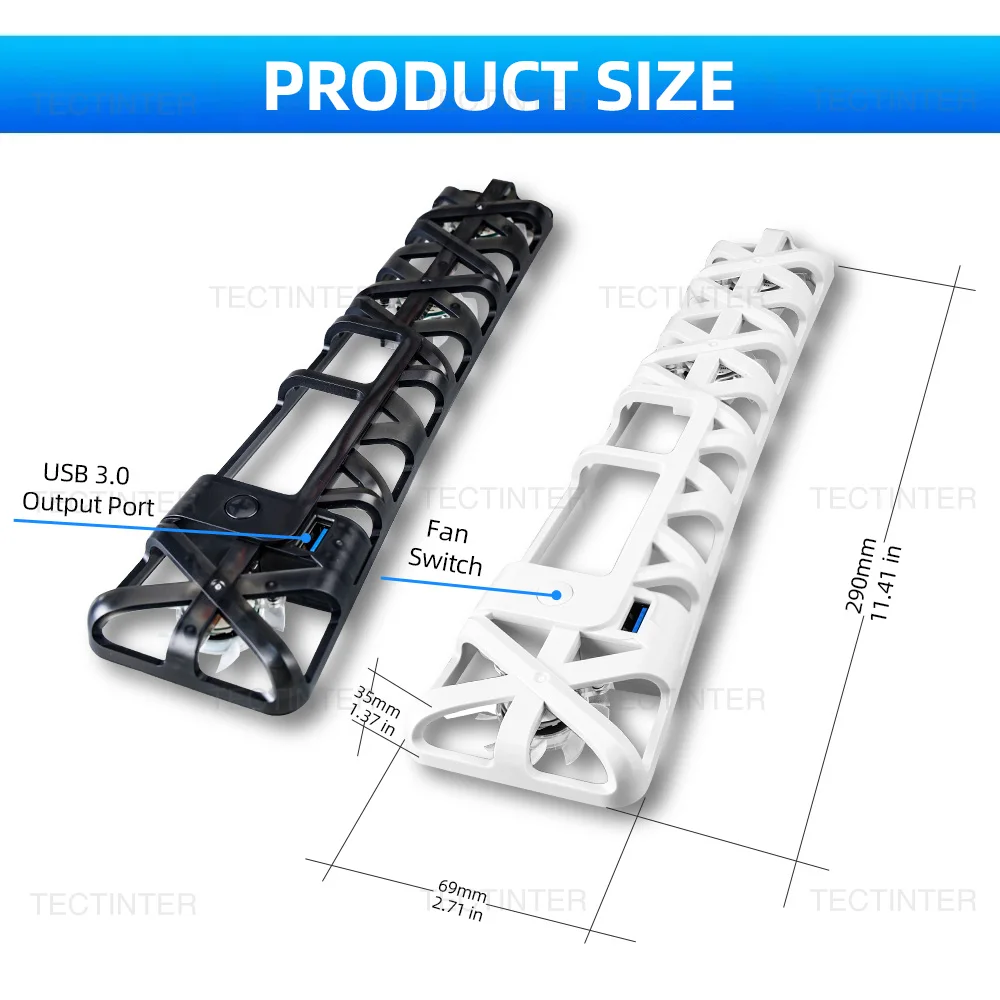 ·Equipado con tres potentes ventiladores, este ventilador de refrigeración lateral proporciona una mayor eficiencia de refrigeración, evitando eficazmente el sobrecalentamiento y extendiendo la vida útil de su consola PS5 Slim.