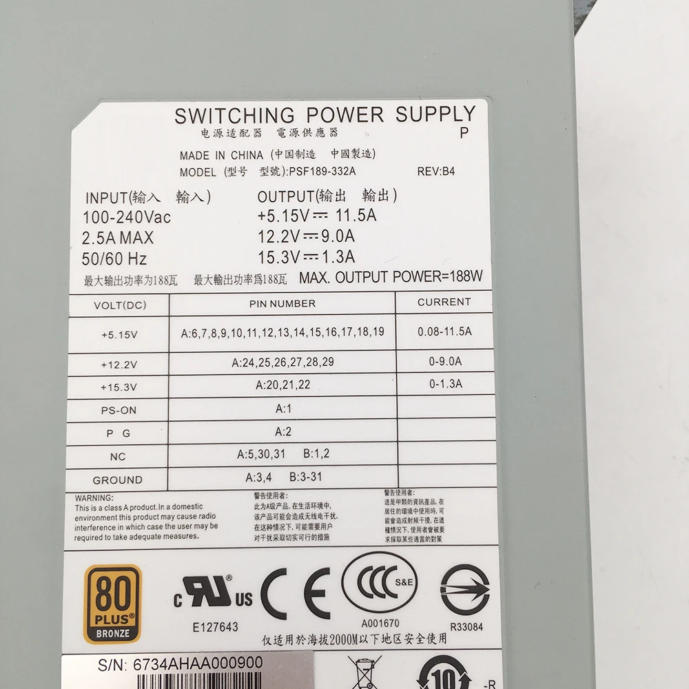 Fuente de alimentación de unidad de cinta PSF189-332A TS3100 TL2000 3573-L2U 07HG1C KM80/FL/E/C 188W perfectamente probada
