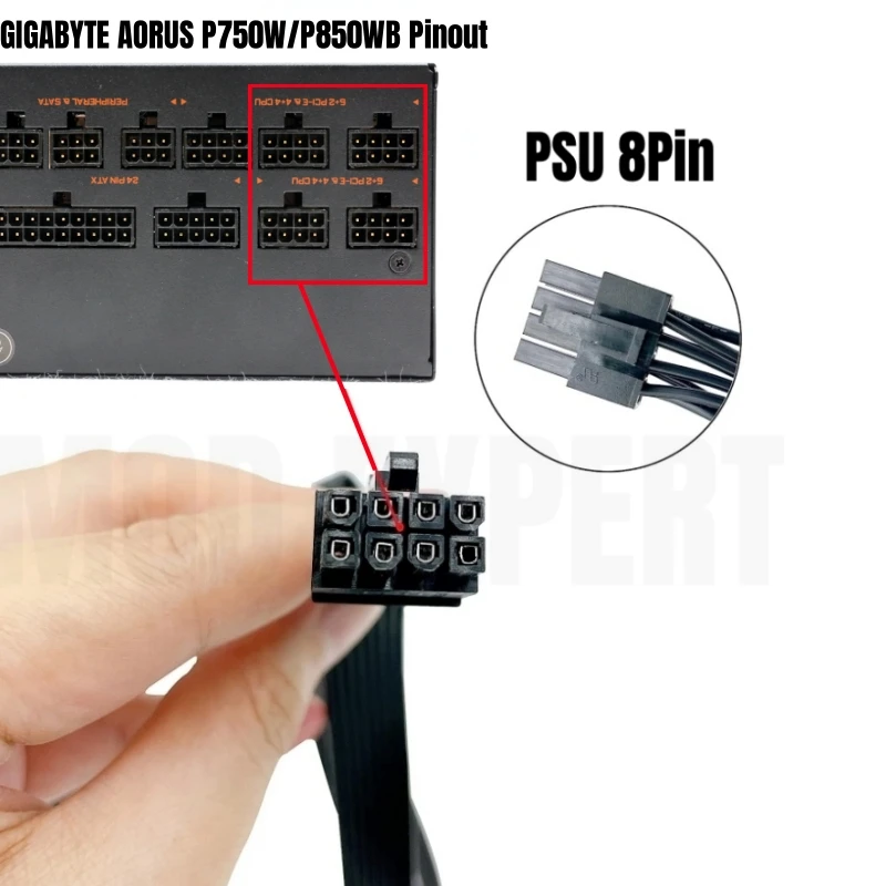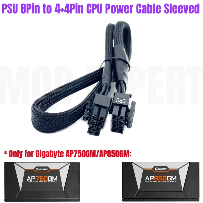 PSU 8Pin to 4+4Pin EPS 12V CPU Power Cable 18AWG Sleeved for Gigabyte AORUS P750W AP750GM, P850W AP850GM Gold Modular Power Unit