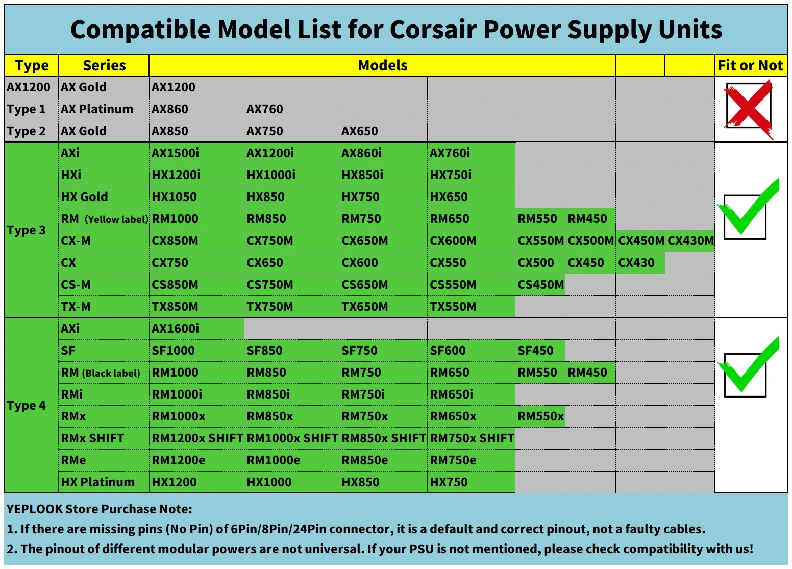 The Dual CPU Power Cable only Compatible with Corsair Powers below: