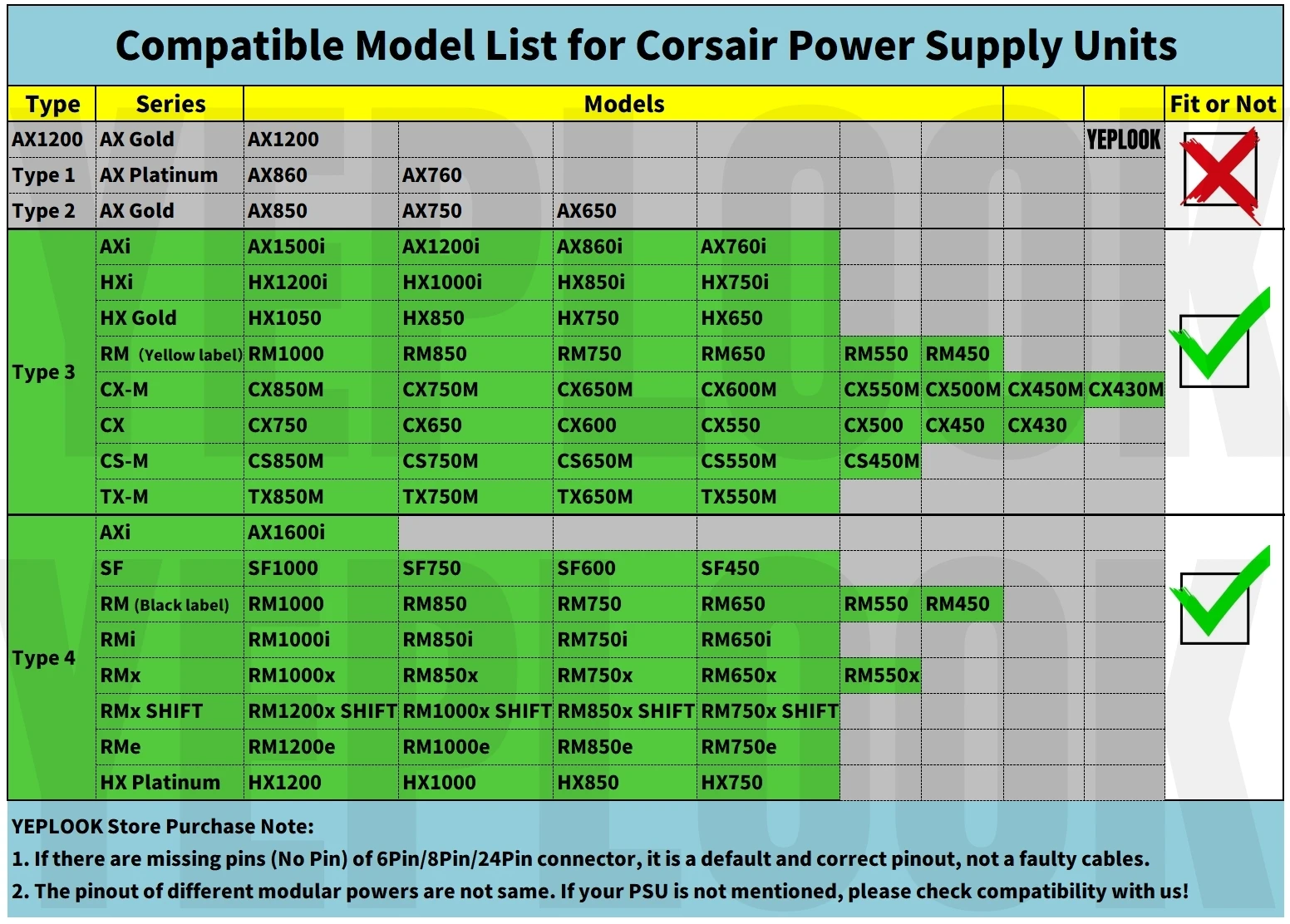 Comprar Para PSU Corsair TX-M, Cable de alimentación GPU de 8 pines a PCIe Dual de 8 pines y 6 + 2 pines para TX850M, TX750M, TX650M, TX550M de alimentación Modular, 18AWG plano