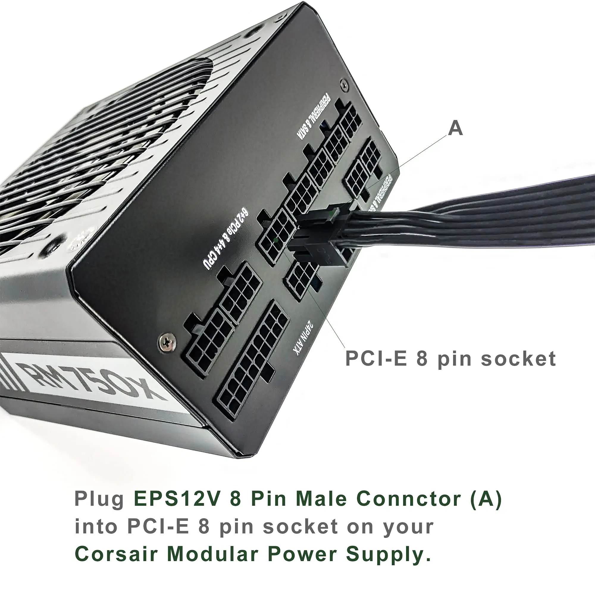 PSU 8Pin a PCIe Dual 8Pin 6+2Pin GPU VGA Cable de alimentación para CORSAIR TX850M TX750M TX650M TX550M Serie TX-M Fuente de alimentación semiamodular 80 PLUS Fuente de alimentación modular bronce 18AWG 60 + 20CM