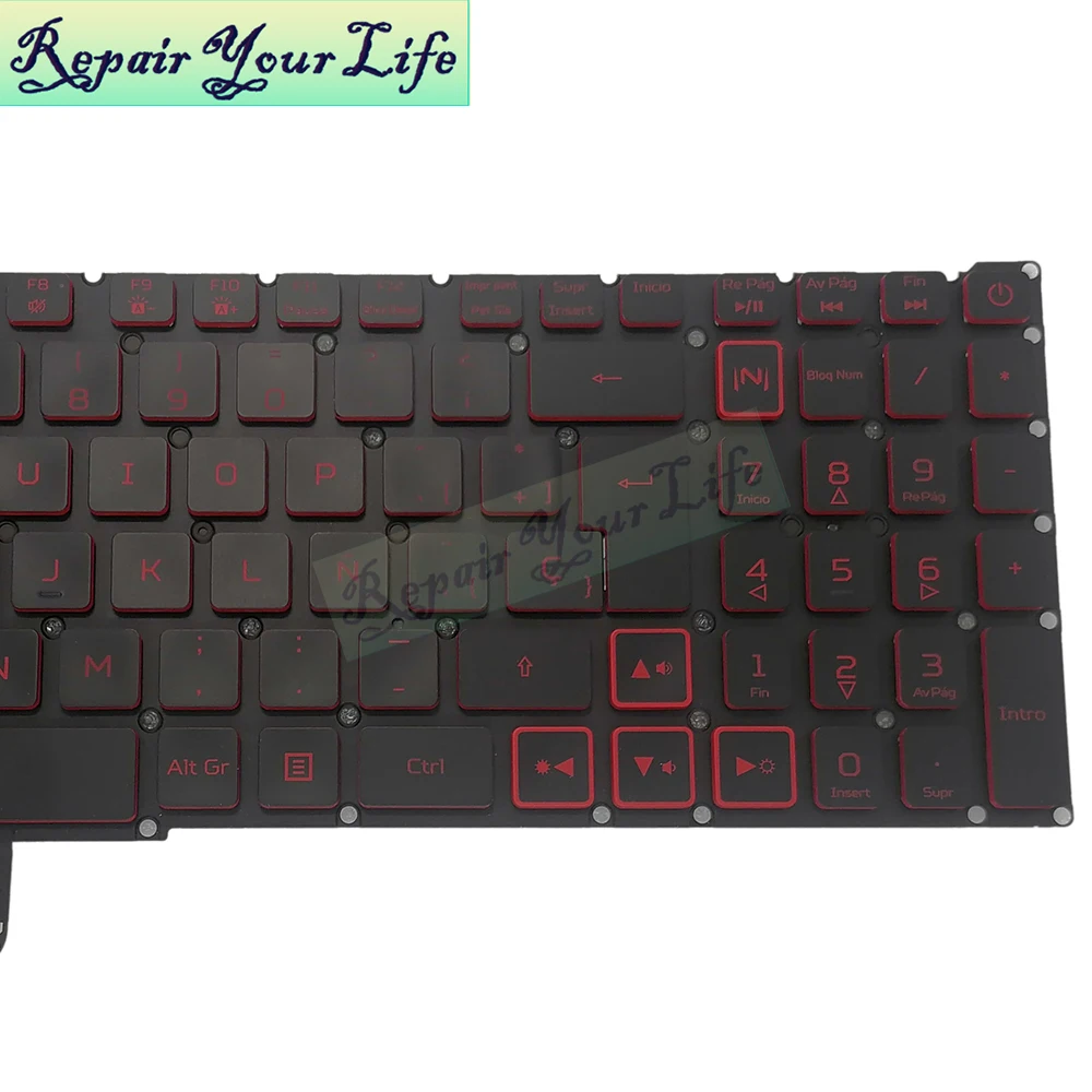 Teclado retroiluminado para Acer Nitro 5, AN517, 52, AN517, 53, AN515, 56, AN515, 57, retroiluminación roja, nuevo, Brasil, español, EE. UU., 2017, 2017