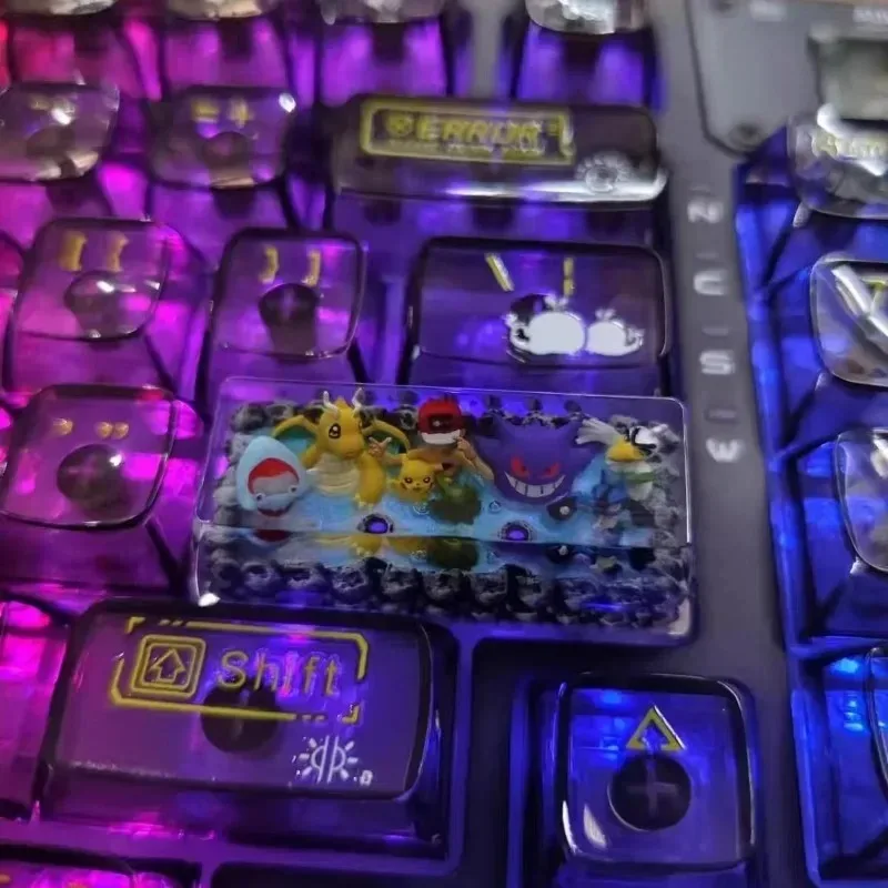PTCG Pokemon Anime Enter Keycap resina transparente Ash Ketchum campeón Gengar Teclado mecánico estereoscópico entrada Keycap