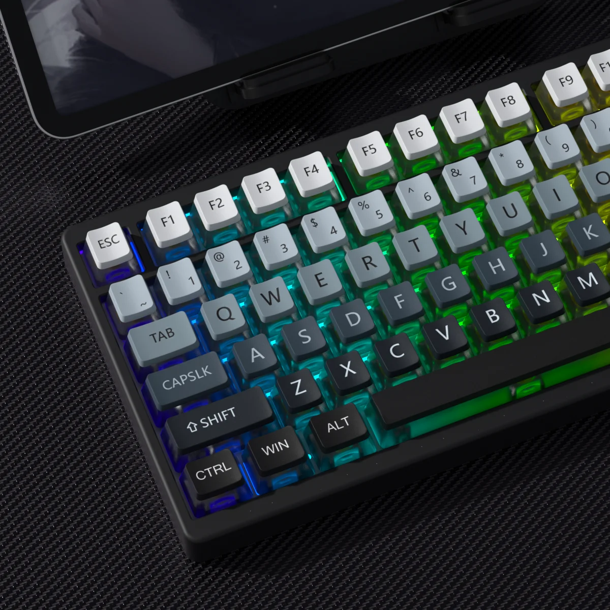 Except for the color cover on the top, the sides of the keycaps are transparent, and the backlight will be visible through the sides