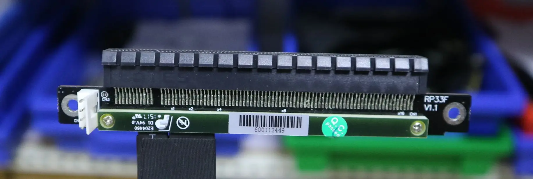 M.2 NVMe a PCIe x16, cable a la derecha, conector a su vez 180o cable de extensión