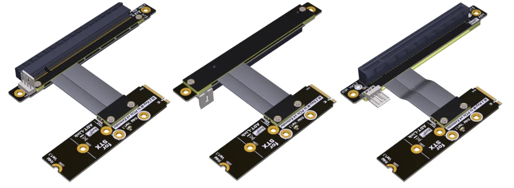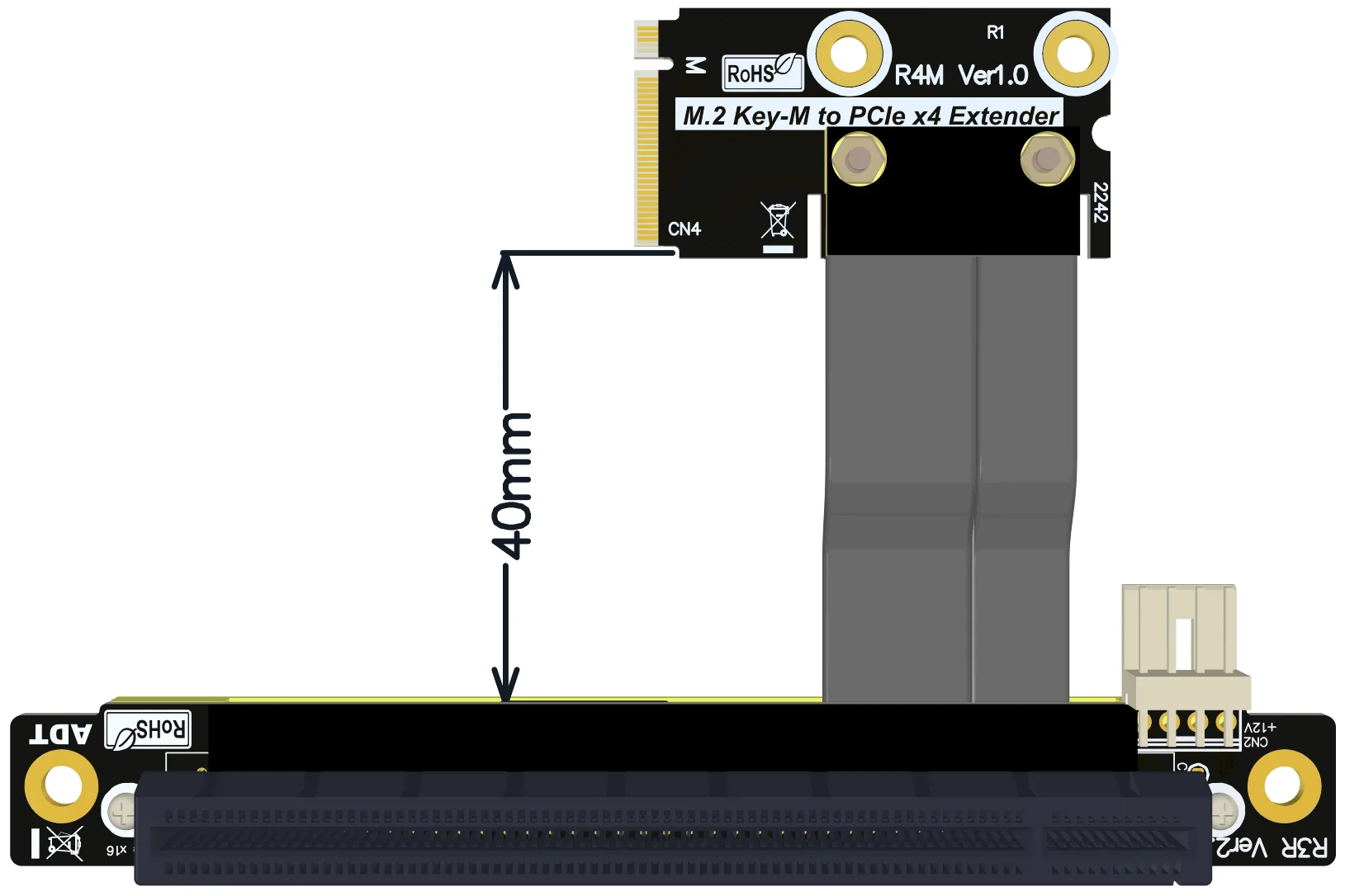 M.2 NVMe a PCIe x16, cable gira a la derecha, conector gira 270oCable alargador