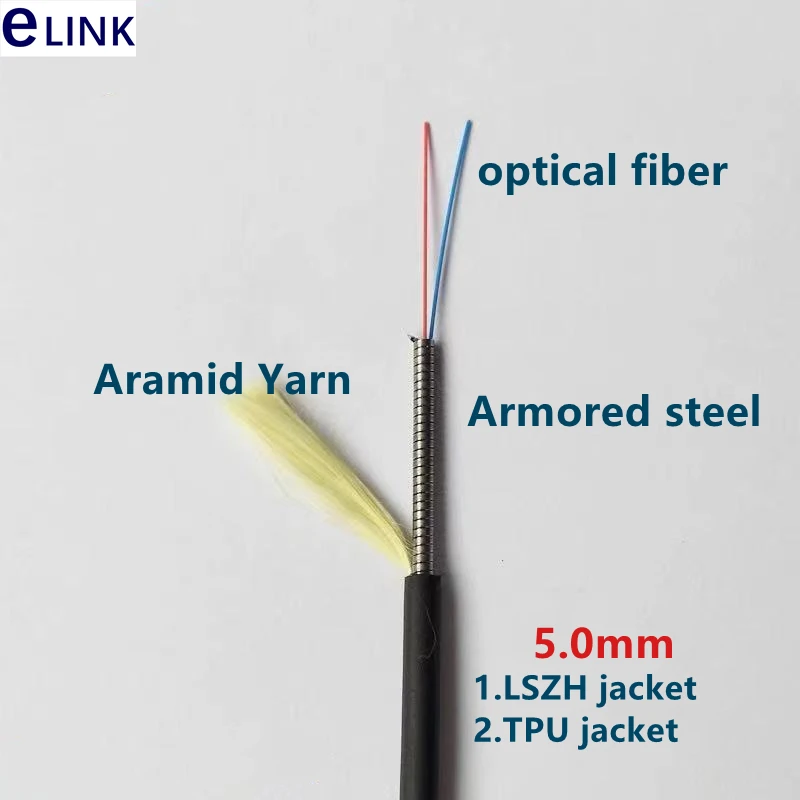 Comprar Puente exterior de TPU de 4 núcleos, 350m-500m, 5mm, LC-LC SC FC ST, cable de fibra óptica LSZH impermeable SM, cable blindado monomodo FTTH