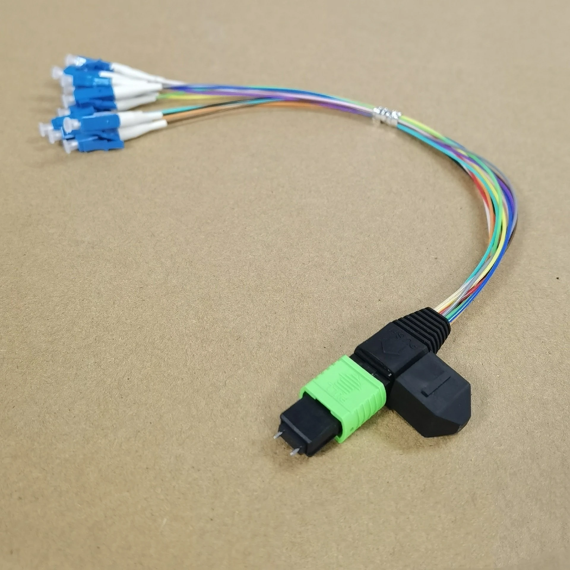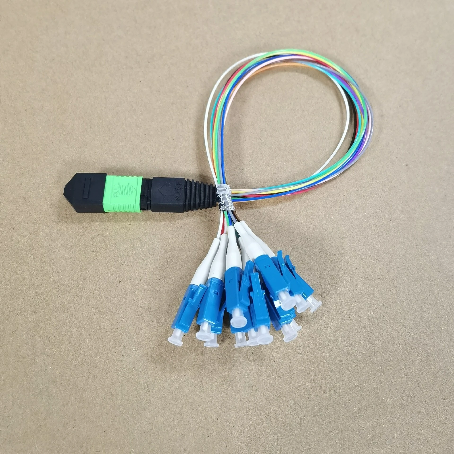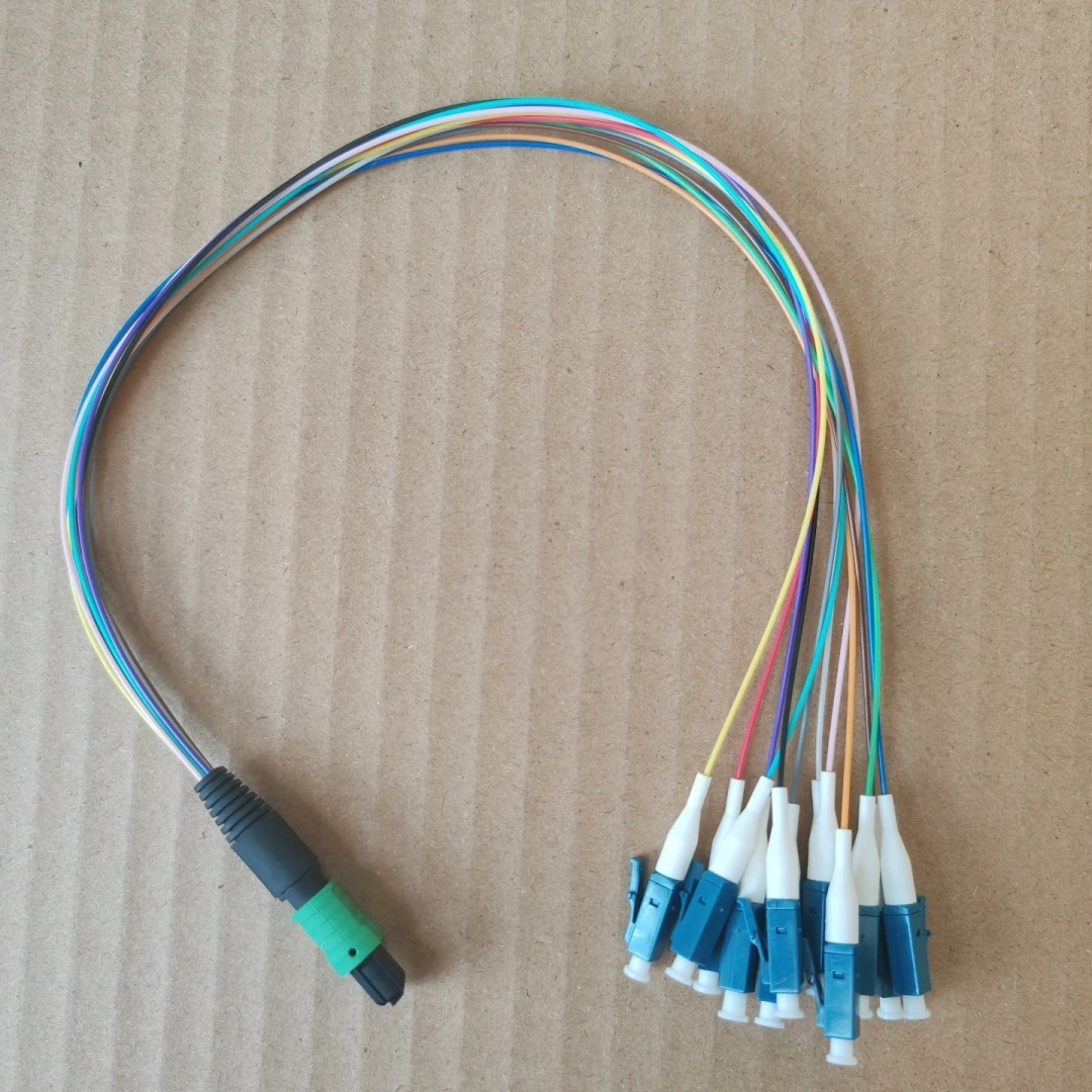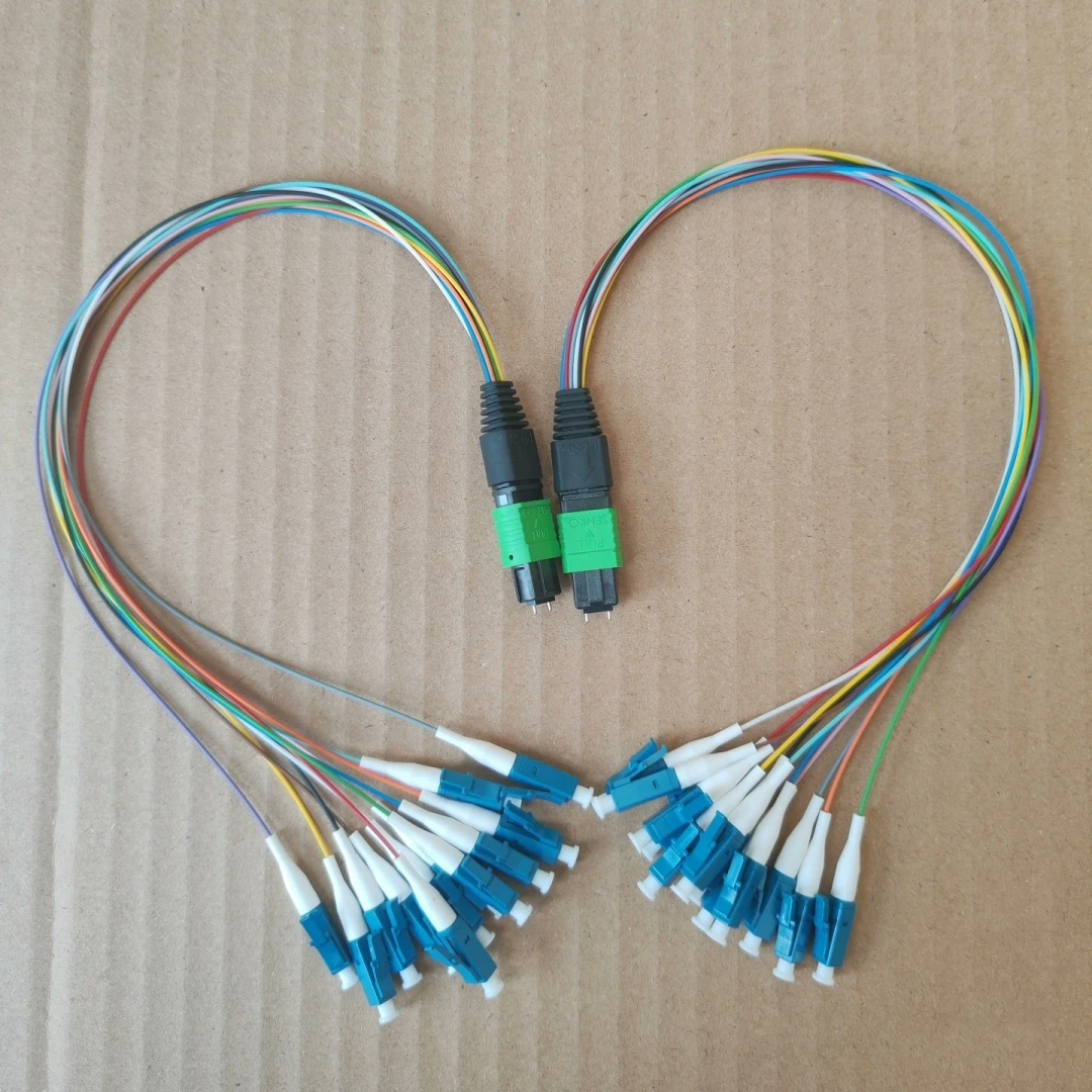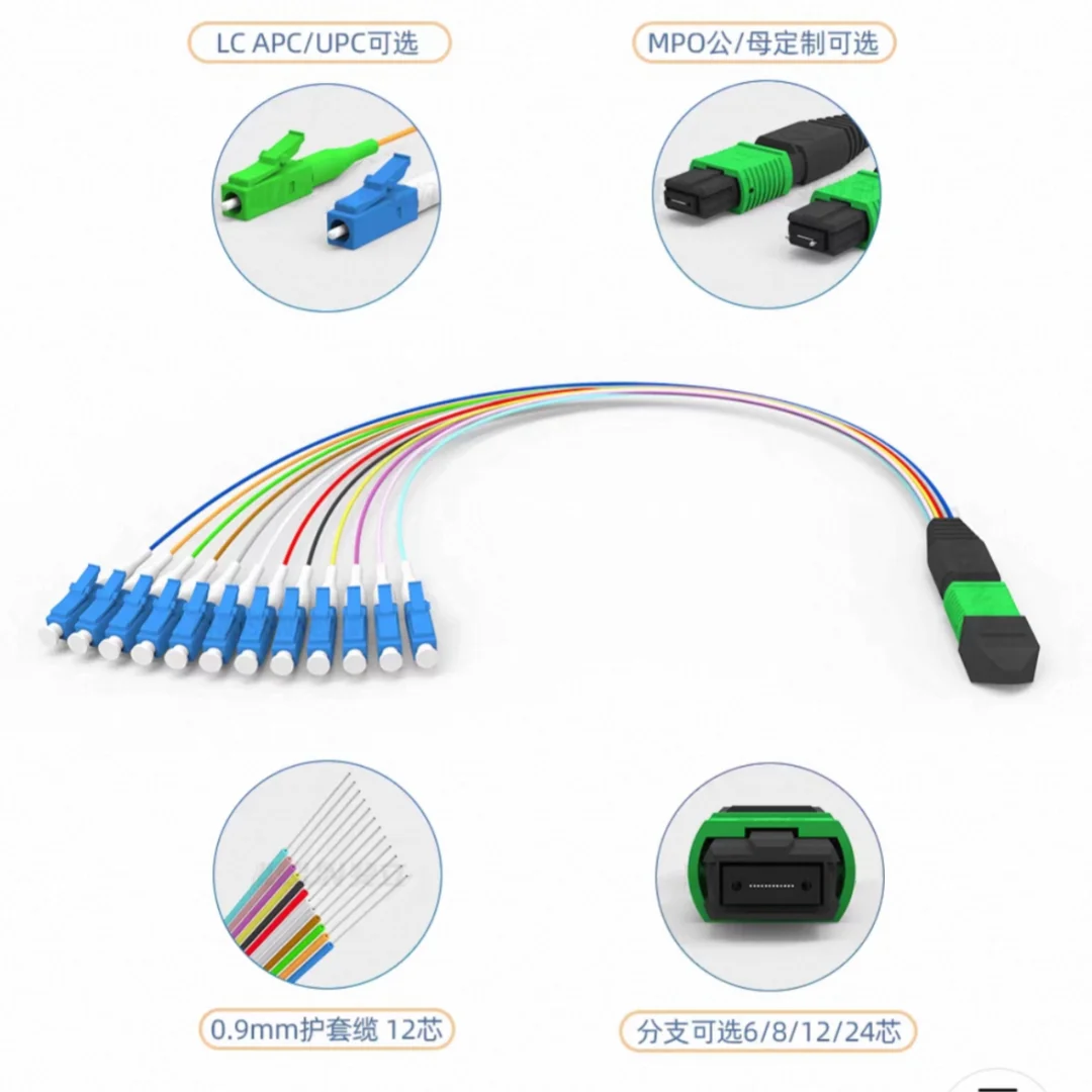 Jumper de fibra monomando 12C MPO/APC-LC 30 cm 6/8/12/24 núcleos 0,9 mm MPO APC hembra macho tipo A B cola de fibra óptica 0,3 m