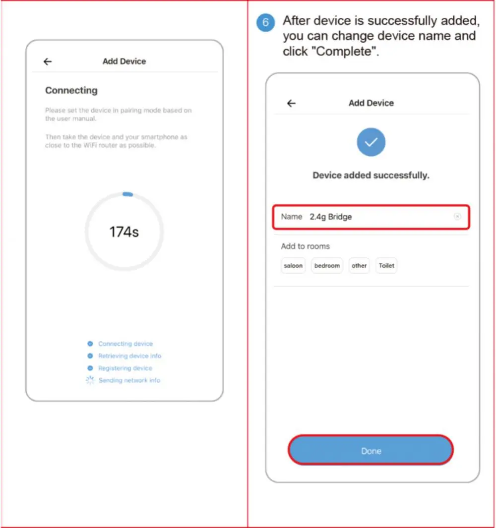 6. El dispositivo se ha añadido correctamente Si, puede modificar el nombre del dispositivo y hacer clic en "Añadir completo".