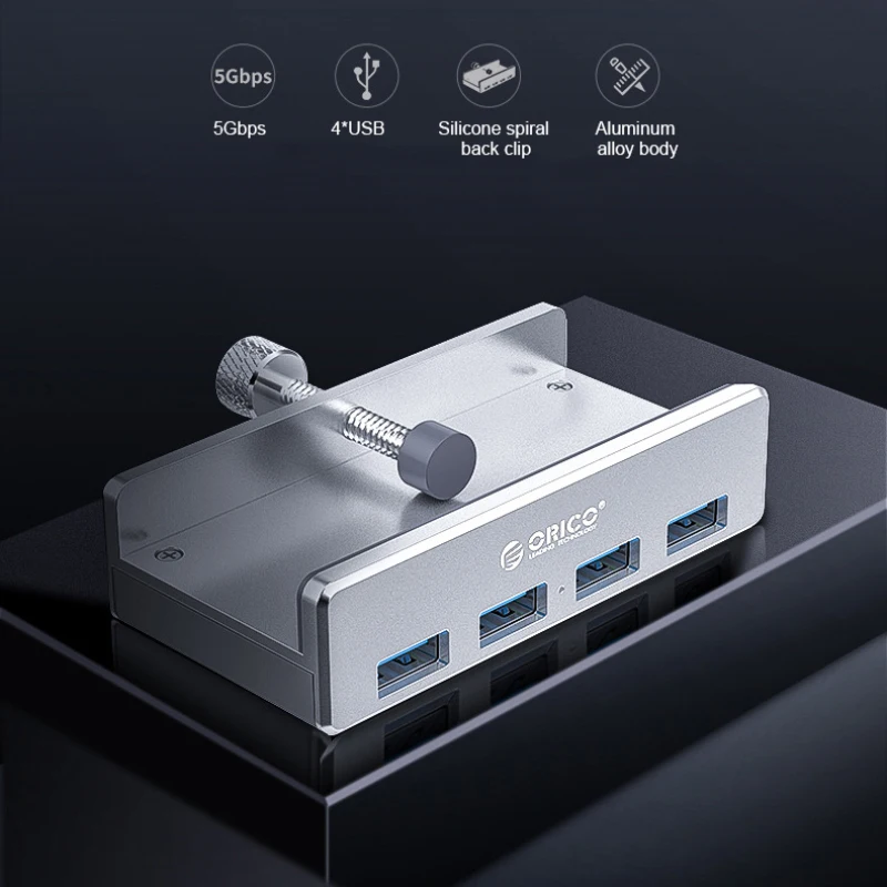 ORICO-Estación de acoplamiento divisor de alta velocidad con 4 puertos USB 3,0 tipo clip de aleación de aluminio para ordenador portátil de escritorio